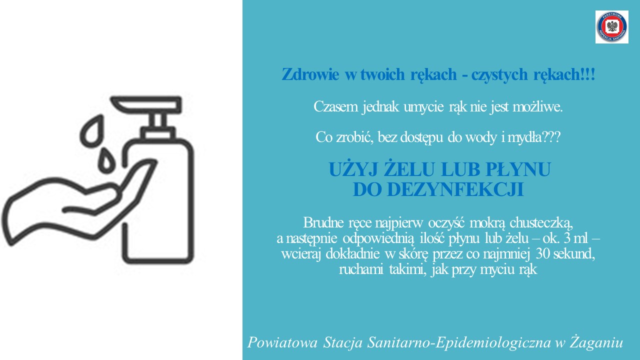 • na koniec dokładnie opłucz ręce wodą i wytrzyj ręce do sucha jednorazowym ręcznikiem.