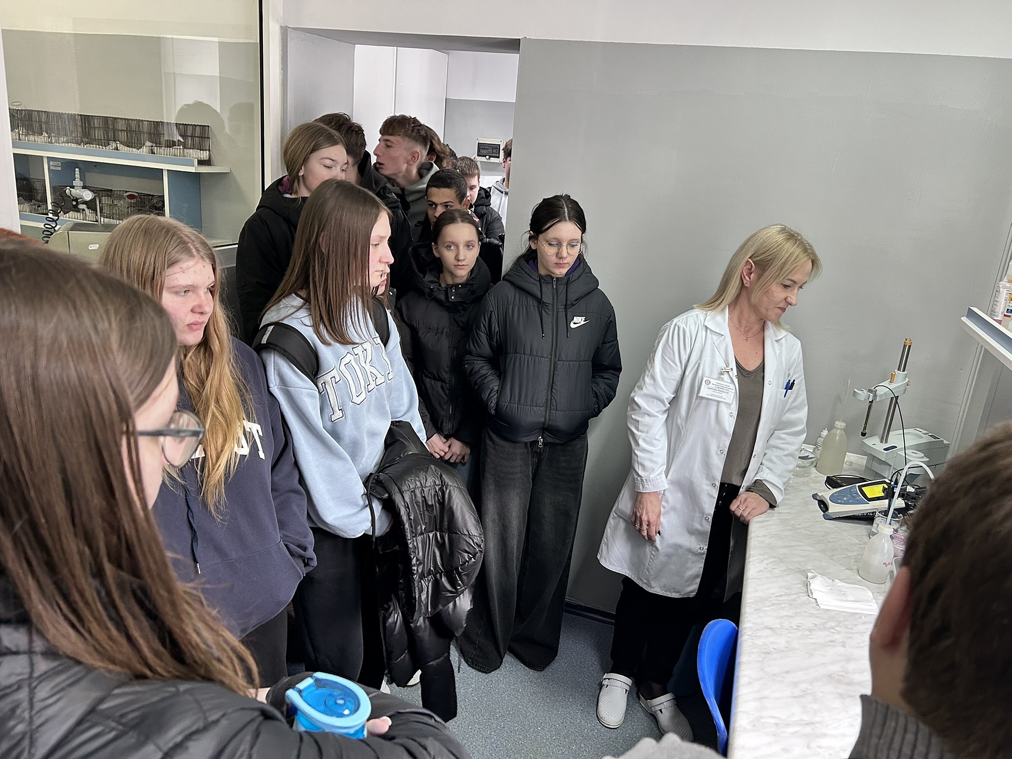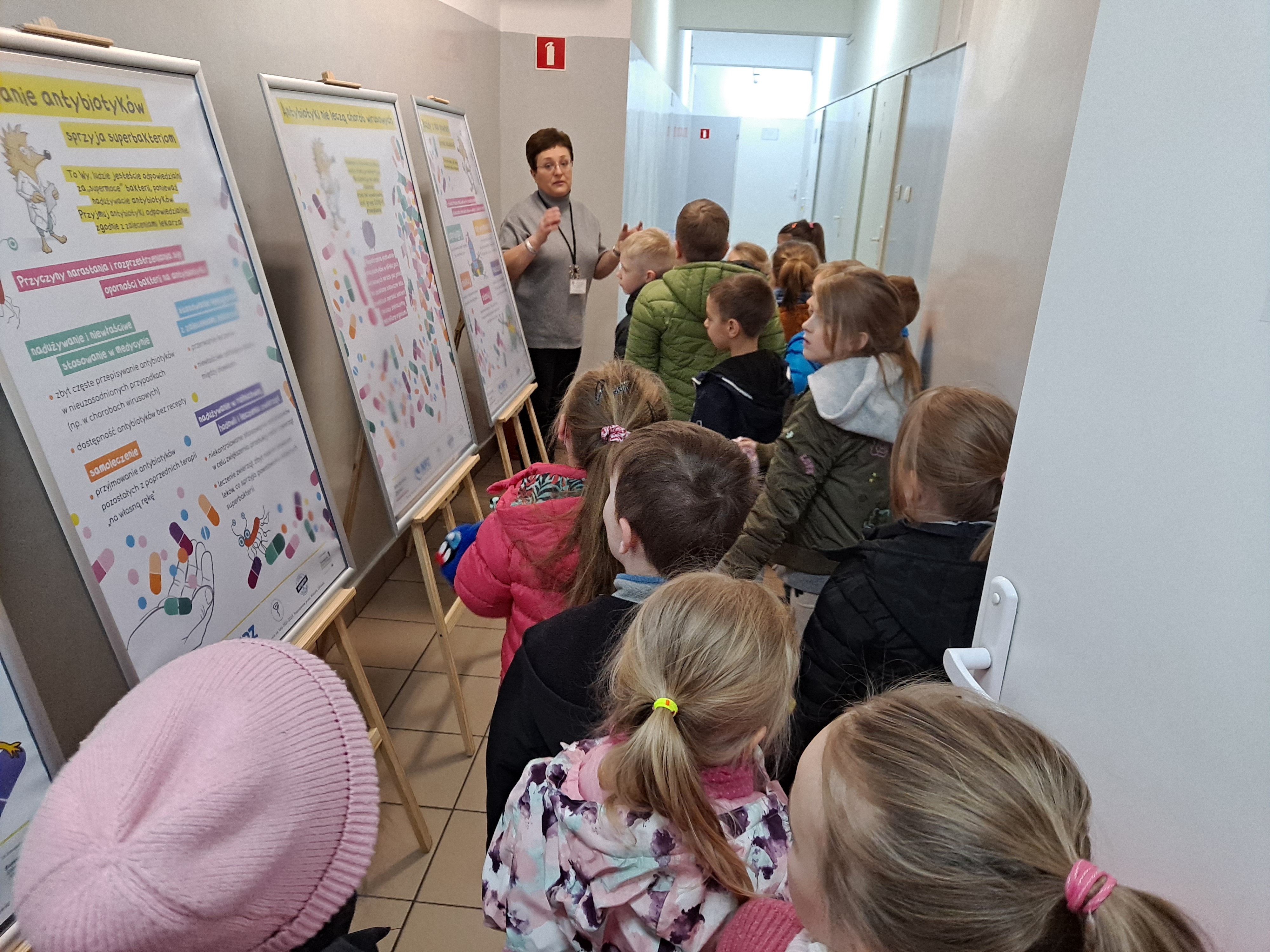 Zainteresowaniem cieszyło się również zwiedzanie laboratorium i pokaz demonstracyjnych badań, przez uczniów klas VIII Szkoły Podstawowej Nr 11 w Zduńskiej Woli. Młodzież zobaczyła nie tylko jak wykonuje się różne badania w laboratorium ale obejrzała również wystawę plakatów dotyczącą antybiotykoodporności, która w bardzo dostępny i atrakcyjny sposób informuje dlaczego z antybiotyków należy korzystać bardzo rozważnie. Duże wrażenie na uczniach zrobiło wypróbowanie alko i narkogogli, co uzmysłowiło im jak wielki jest negatywny skutek oddziaływania używek takich jak alkohol czy narkotyki na zmysły człowieka.