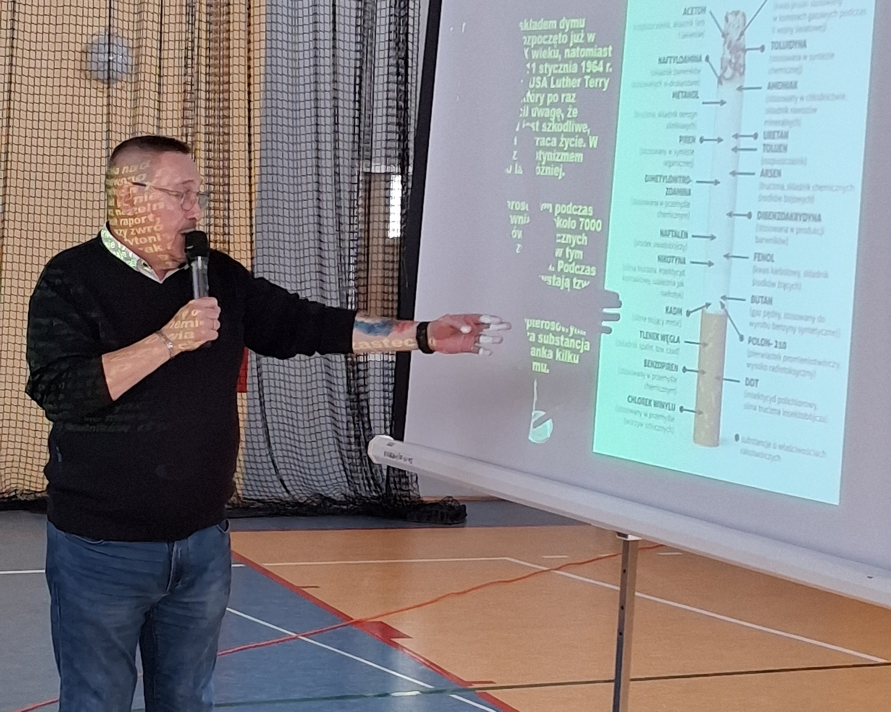 Prelekcja w ramach obchodów Światowego Dnia Rzucania Palenia w Szkole Podstawowej Nr 13 w Zduńskiej Woli.