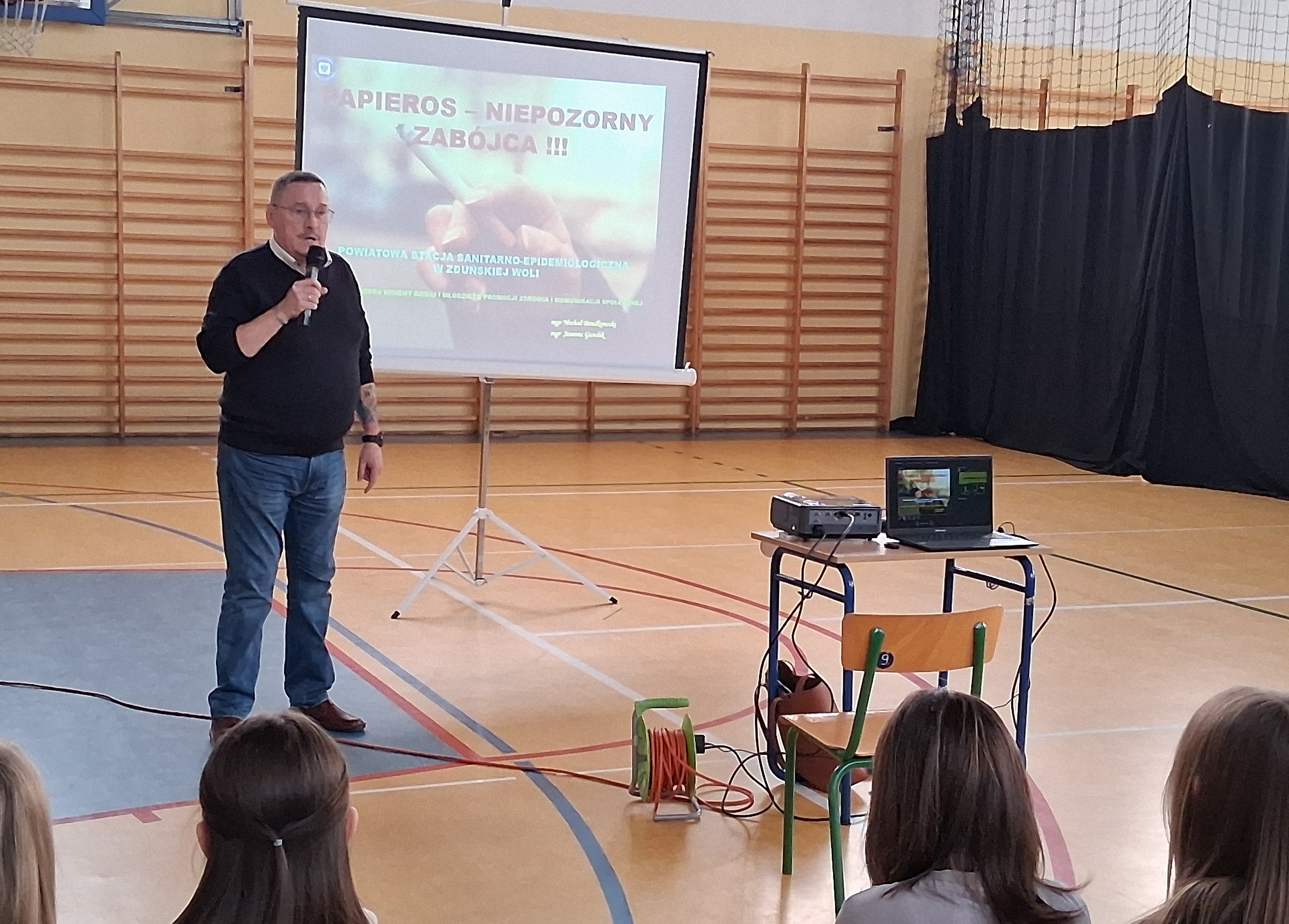 W ramach obchodów pracownicy Sekcji Nadzoru Higieny Dzieci i Młodzieży, Promocji Zdrowia i Komunikacji Społecznej Powiatowej Stacji Sanitarno-Epidemiologicznej w Zduńskiej Woli, obok wielu działań w social mediach, dystrybucji materiałów edukacyjnych do publicznych i niepublicznych Zakładów Opieki Zdrowotnej, oraz przekazania do szkół ponadpodstawowych prezentacji mulimedialnej, broszur dla uczniów, rodziców i nauczycieli dotyczących profilaktyki antytytoniowej, przeprowadzili pogadankę dotyczącą szkodliwości palenia tytoniu dla klas VII i VIII Szkoły Podstawowej w Szkole Podstawowej Nr 13 w Zduńskiej Woli. Podczas spotkania wykorzystano prezentację multimedialną stworzoną przez pracowników „Papieros – niepozorny zabójca!!!” dotyczącą szkodliwości palenia papierosów tradycyjnych, oraz film edukacyjny „W zdrowym ciele – zdrowe JA” dotyczący zagrożeń wynikających z palenia e-papierosów i inhalowania dymu z podgrzewaczy tytoniu. Przedstawiono historię palenia tytoniu, skutki zdrowotne, korzyści wynikające z rzucenia palenia, normy prawne dotyczące palenia tytoniu jakie obowiązują w Polsce. Duży nacisk postawiono na obalenie mitów dotyczących nieszkodliwości e-papierosów i pogrzewaczy tytoniu.