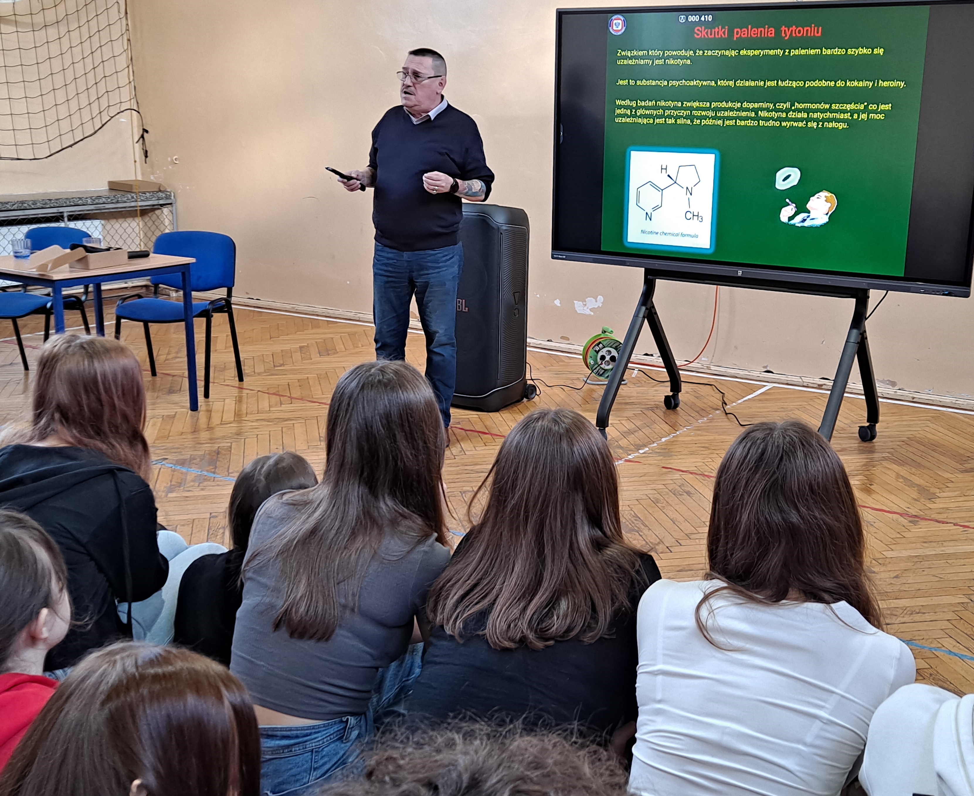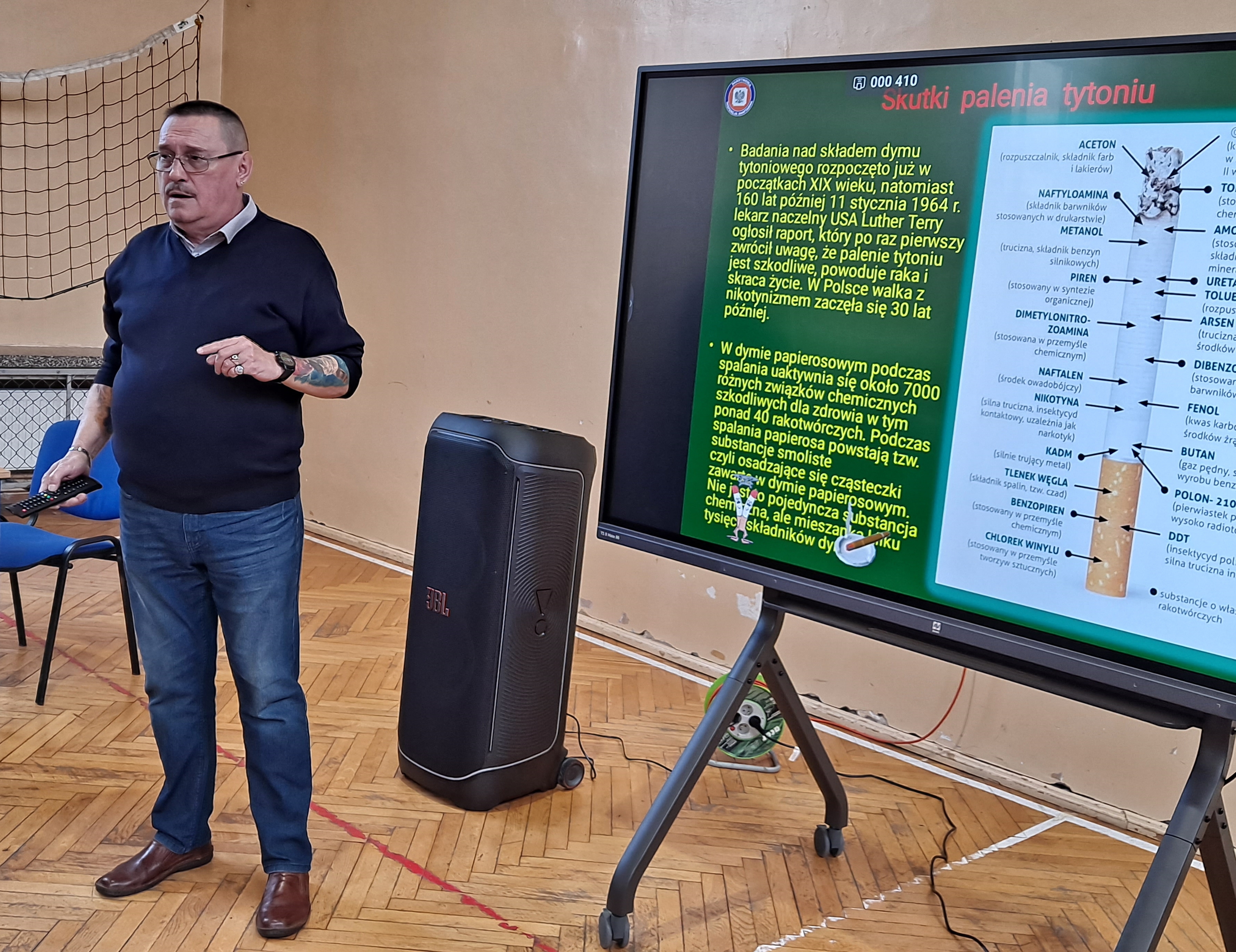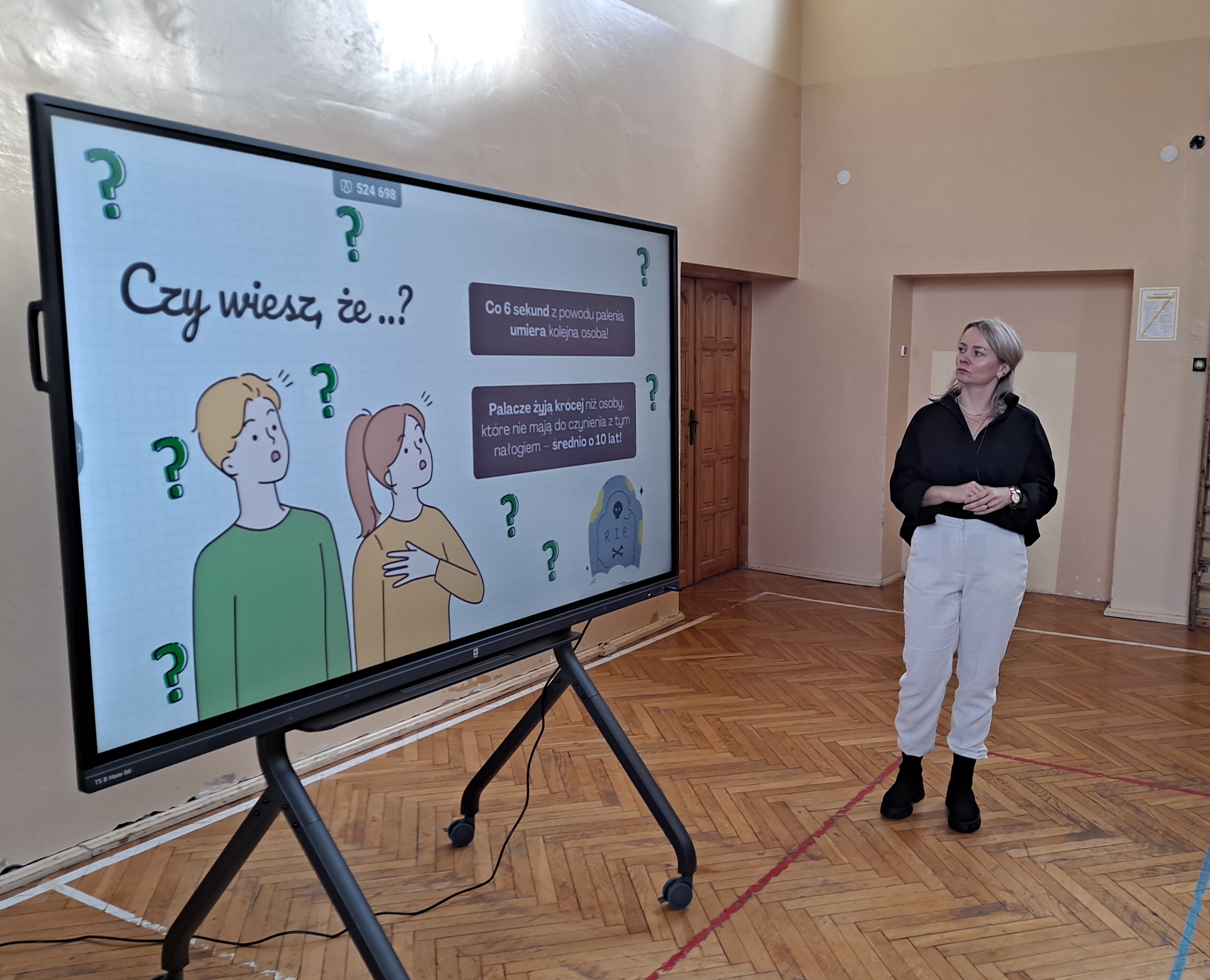 W ramach obchodów Światowego Dnia Rzucania Palenia 2024 pracownicy Sekcji Nadzoru Higieny Dzieci i Młodzieży, Promocji Zdrowia i Komunikacji Społecznej Powiatowej Stacji Sanitarno-Epidemiologicznej w Zduńskiej Woli, obok wielu działań w social mediach, dystrybucji materiałów edukacyjnych do publicznych i niepublicznych Zakładów Opieki Zdrowotnej, przeprowadzili pogadankę dotyczącą szkodliwości palenia tytoniu dla klas VII i VIII Szkoły Podstawowej w Szkole Podstawowej Nr 12 w Zduńskiej Woli. Podczas spotkania wykorzystano prezentację multimedialną stworzoną przez pracowników „Papieros – niepozorny zabójca!!!” dotyczącą szkodliwości palenia papierosów tradycyjnych, oraz film edukacyjny „W zdrowym ciele – zdrowe JA” dotyczący zagrożeń wynikających z palenia e-papierosów i inhalowania dymu z podgrzewaczy tytoniu. Spotkanie miało bardzo interesujący przebieg, uczniowie zadawali pytania związane z wyżej wymienią tematyką, kładąc szczególny nacisk na używanie e-papierosów i palenie bierne.