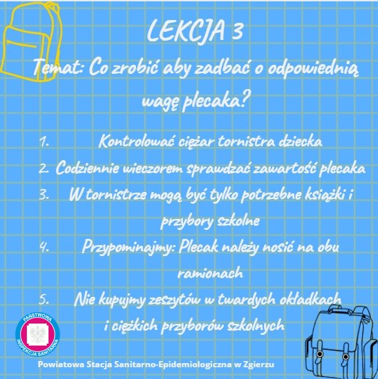 Zapraszamy także do dzielenia się z Państwową Inspekcją Sanitarną informacjami o podejmowanych działaniach. Czekamy na linki do ciekawych materiałów podsumowujących Ogólnopolski Dzień Tornistra (opisów, fotorelacji, filmików), które wcześniej opublikujecie Państwo na stronach internetowych Waszych szkół.