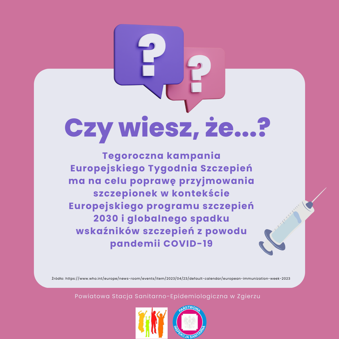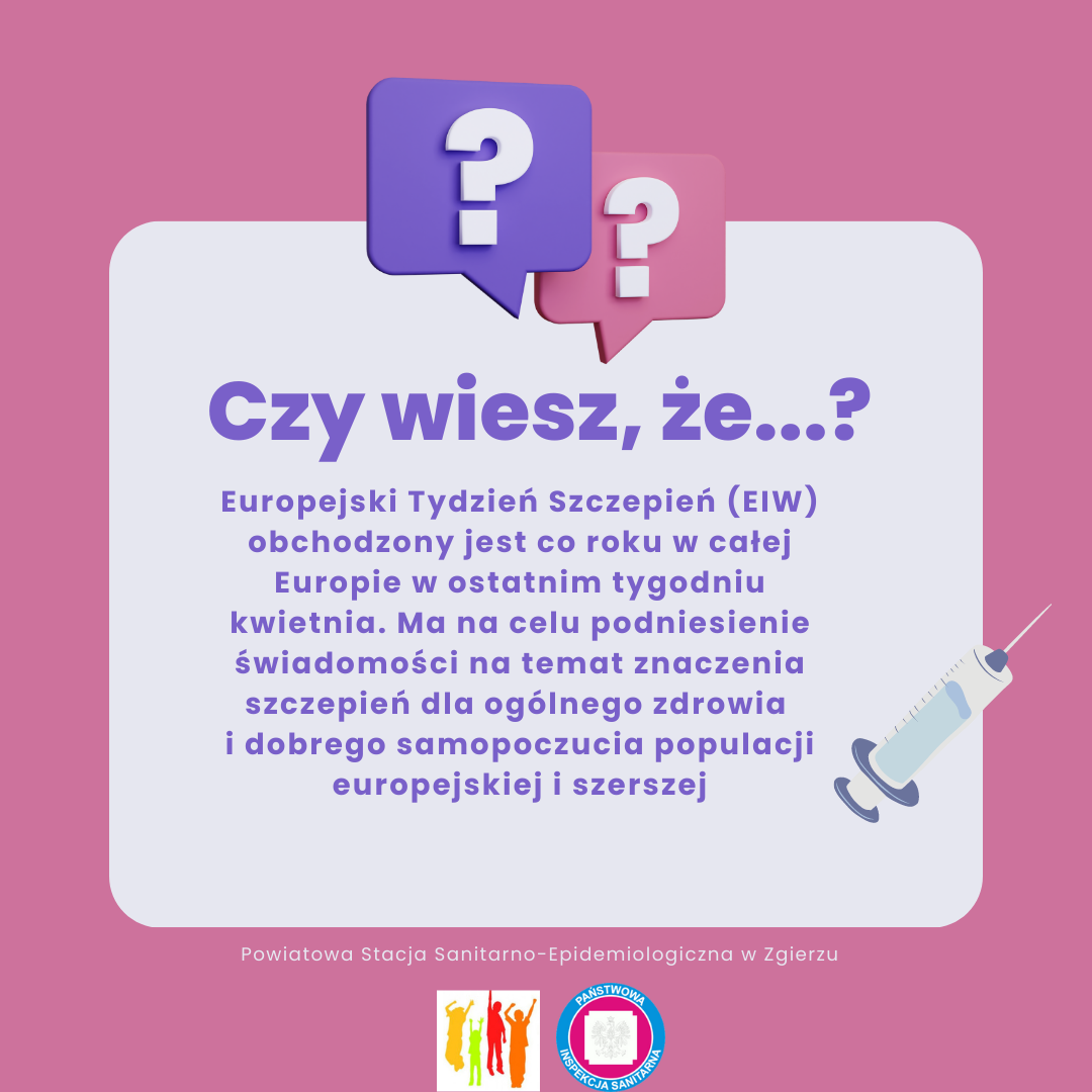 Europejski Tydzień Szczepień obchodzony jest w ostatnim tygodniu kwietnia i ma na celu podkreślenie wspólnych działań niezbędnych do ochrony ludzi przed chorobami, którym można zapobiegać poprzez szczepienia.