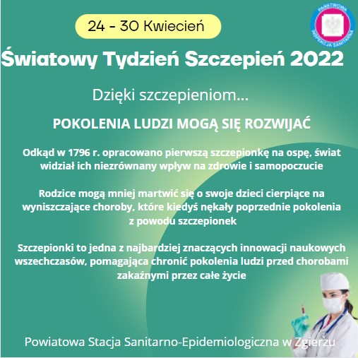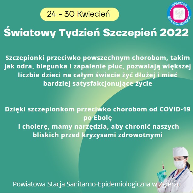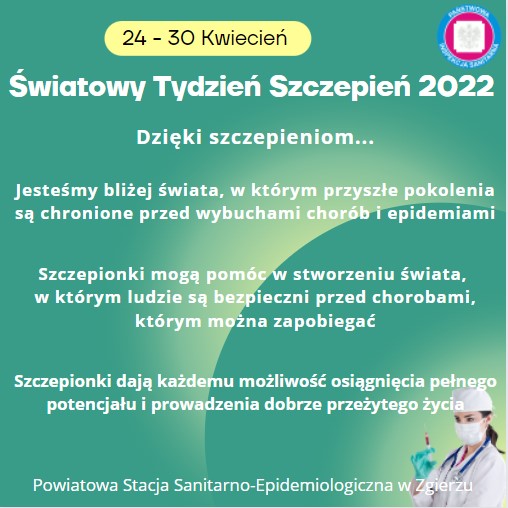 Światowy Tydzień Szczepień, obchodzony jest w ostatnim tygodniu kwietnia i ma na celu podkreślenie potrzebnych wspólnych działań i promowanie stosowania szczepionek w celu ochrony osób w każdym wieku przed chorobami.