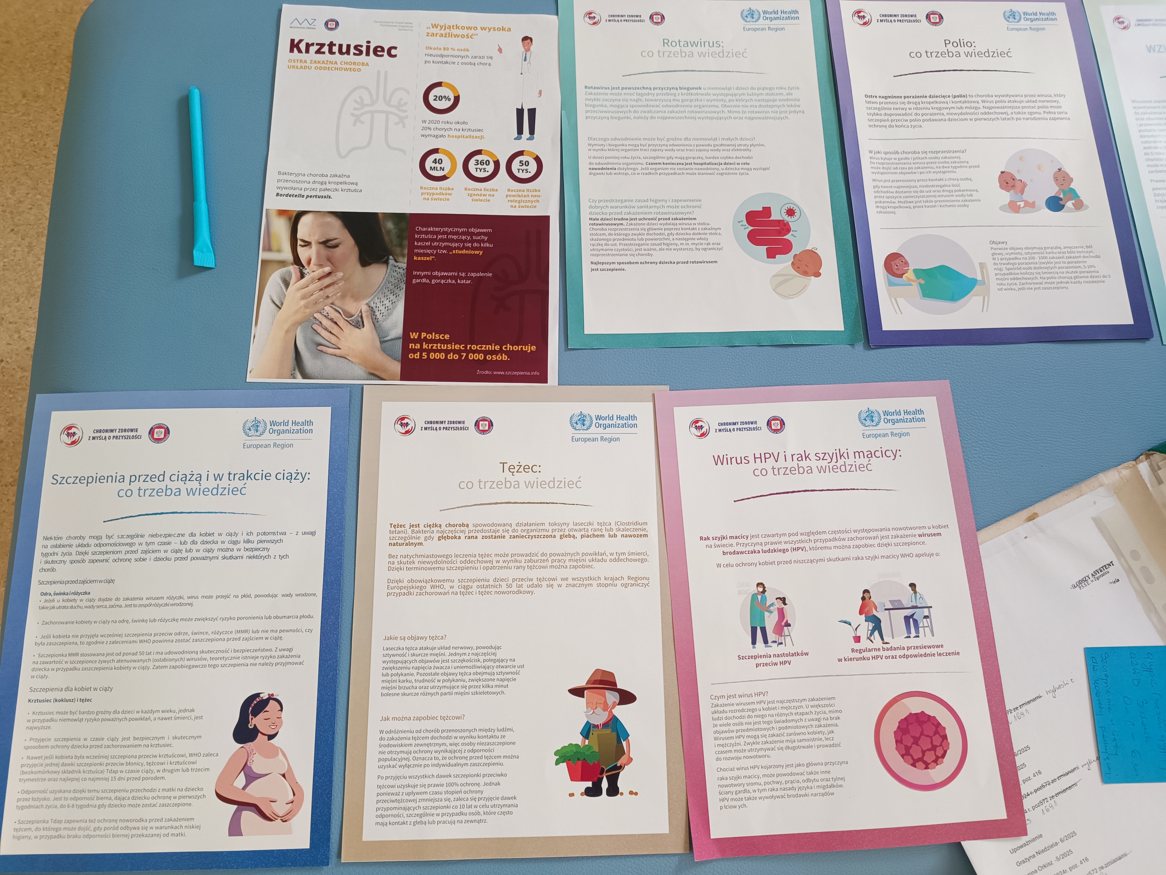 Podczas spotkania przekazano ulotki i plakaty informacyjne na temat szczepień.