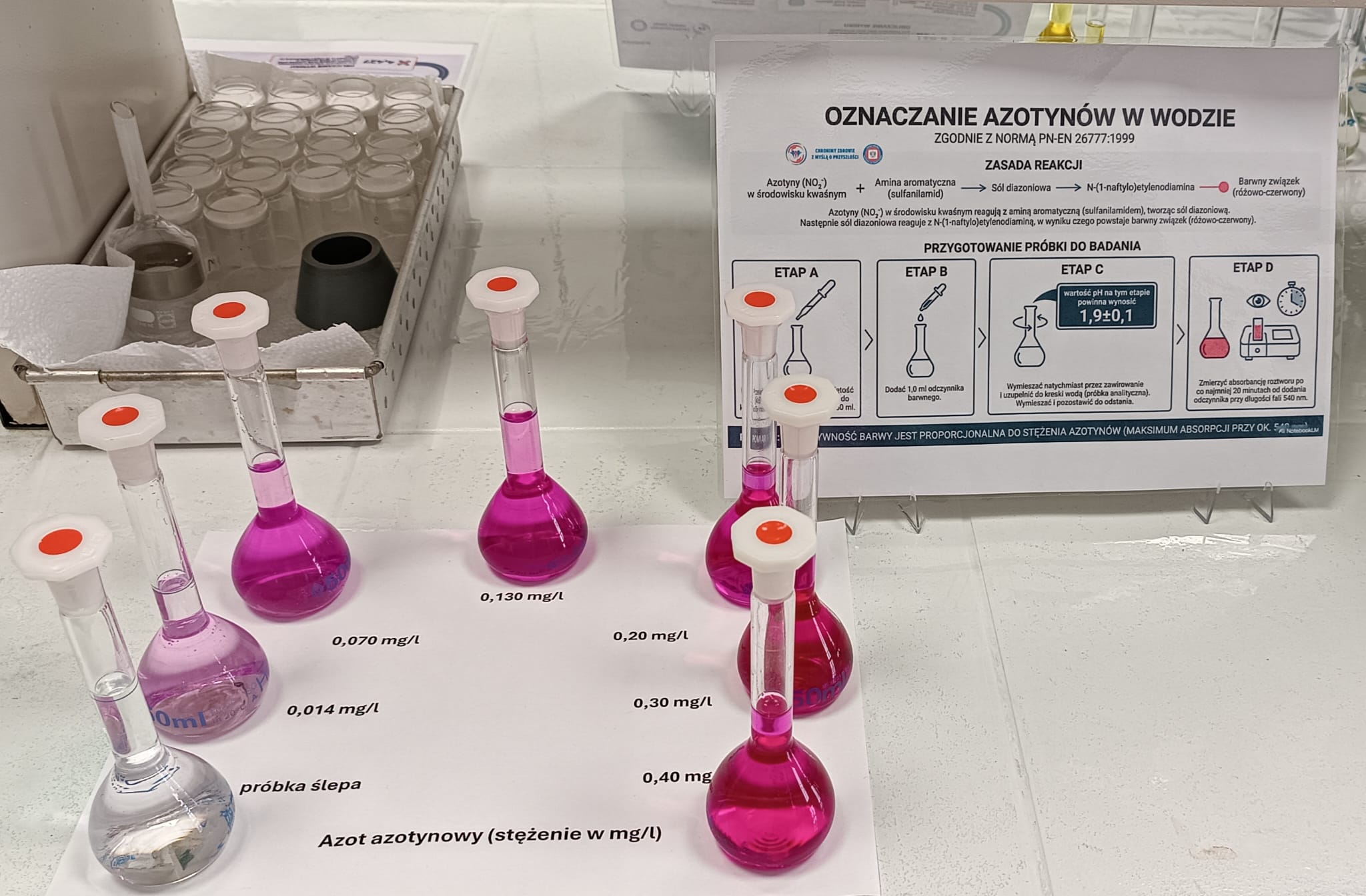 Prezentowane schematy badań mikrobiologicznych i fizykochemicznych zostały uzupełnione o demonstracyjne preparaty oraz materiały laboratoryjne, co pozwoliło lepiej zrozumieć procesy zachodzące w analizach.