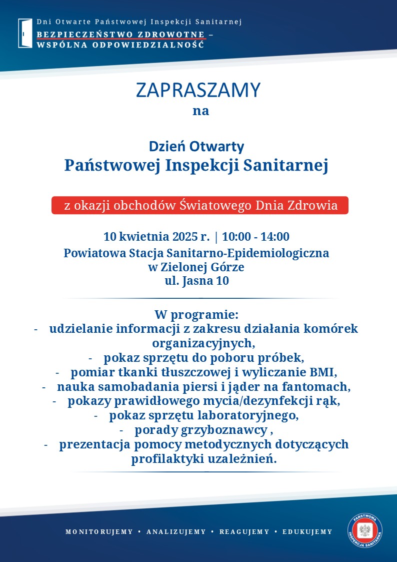 Zapraszamy na dzień Otwarty Państwowej Inspekcji Sanitarnej z okazji obchodów Światowego Dnia Zdrowia