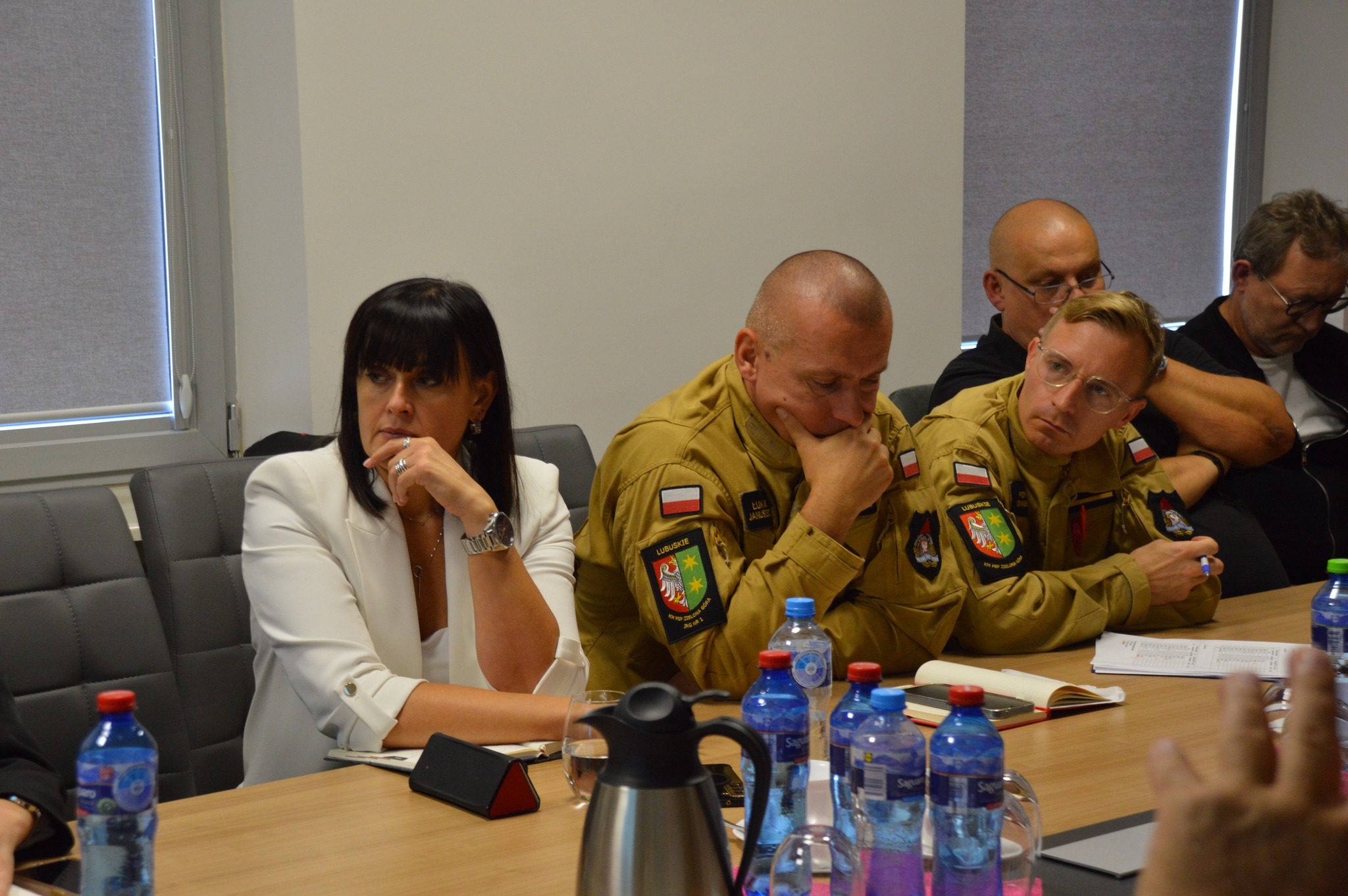Zarząd reprezentowała pani wicestarosta - Agnieszka Szeląg, zaś spotkanie prowadził pan Maksymilian Koperski z Biura Zarządzania Kryzysowego i Spraw Obronnych.