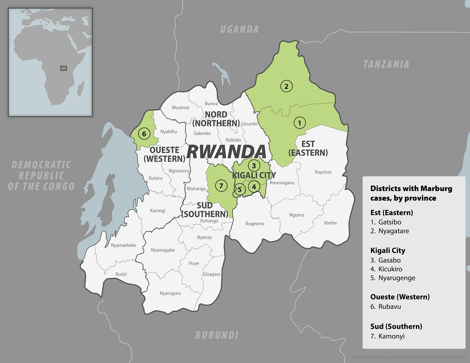 27 września 2024 r. w Rwandzie potwierdzono ognisko epidemiczne gorączki krwotocznej Marburg. Zachorowania występują na terenie kilku dystryktów,  w tym w stolicy Rwandy - Kigali oraz w regionach graniczących z innymi państwami regionu: Demokratyczną Republiką Konga, Ugandą, Tanzanią (mapa).