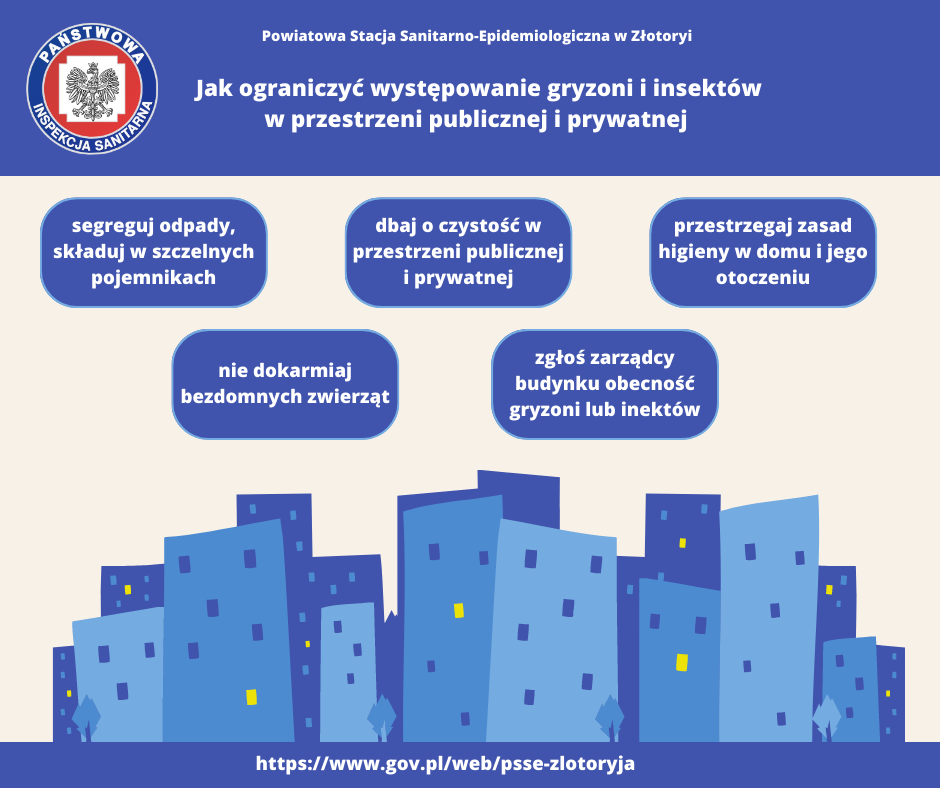 W związku z trwającym sezonem letnim, Państwowy Powiatowy Inspektor Sanitarny w Złotoryi przypomina, że wysokie temperatury, niezachowanie porządku w przestrzeni publicznej i prywatnej, niewłaściwe gospodarowanie odpadami mają istotny wpływ na rozprzestrzenianie się populacji gryzoni i insektów.