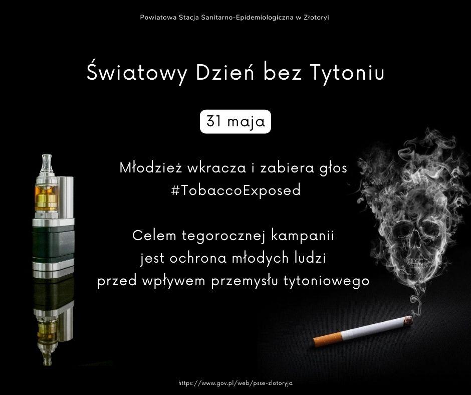 i zabiera głos #TobaccoExposed”. Celem kampanii jest ochrona młodych ludzi przed wpływem przemysłu tytoniowego. Działania podjęte przez WHO w mediach społecznościowych są kontynuacją strategii „dla młodzieży przez młodzież”, w ramach której będą oni protestować przeciwko manipulacyjnym taktykom przemysłu tytoniowego oraz wskazywać na jego szkodliwy wpływ na zdrowie, sprawiedliwość społeczną i środowisko.