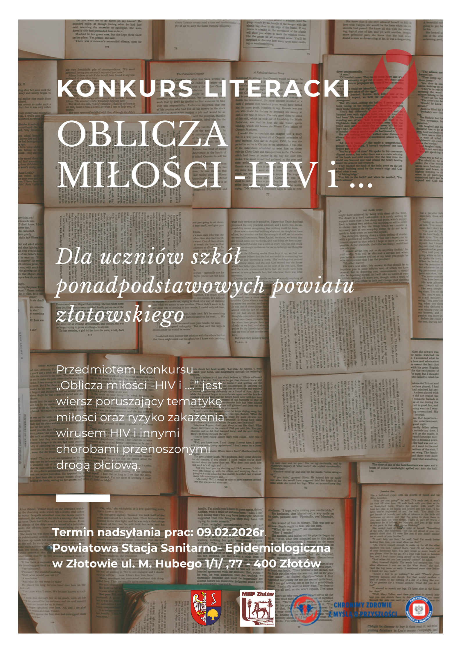 Państwowy Powiatowy Inspektor Sanitarny w Złotowie serdecznie zaprasza uczniów szkół ponadpodstawowych z powiatu złotowskiego do udziału w konkursie literackim "Oblicza miłości - HIV i ..."