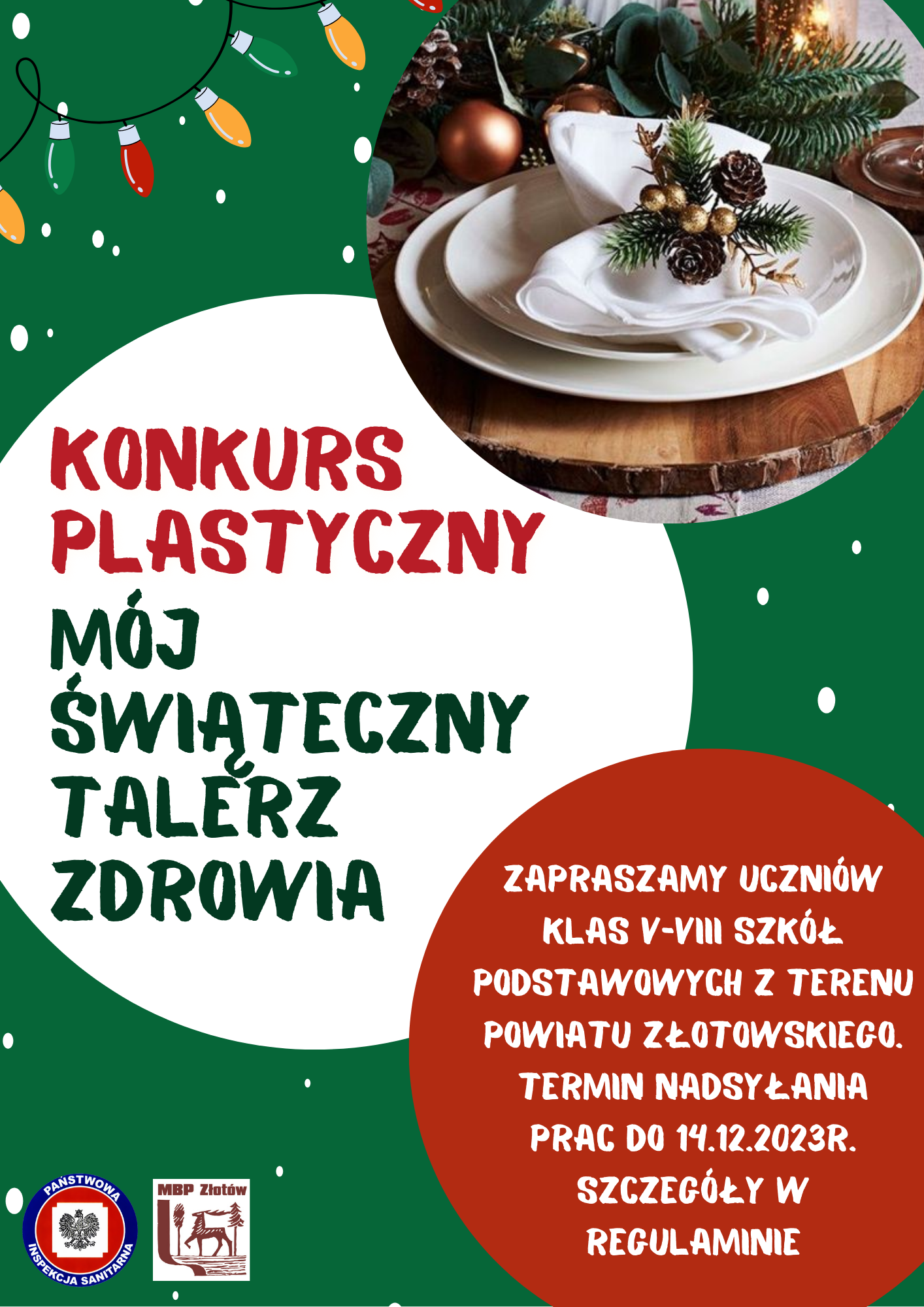 Państwowy Powiatowy Inspektor Sanitarny w Złotowie serdecznie zaprasza uczniów klas V-VIII szkół podstawowych z powiatu złotowskiego do udziału w konkursie plastycznym Mój Świąteczny talerz zdrowia