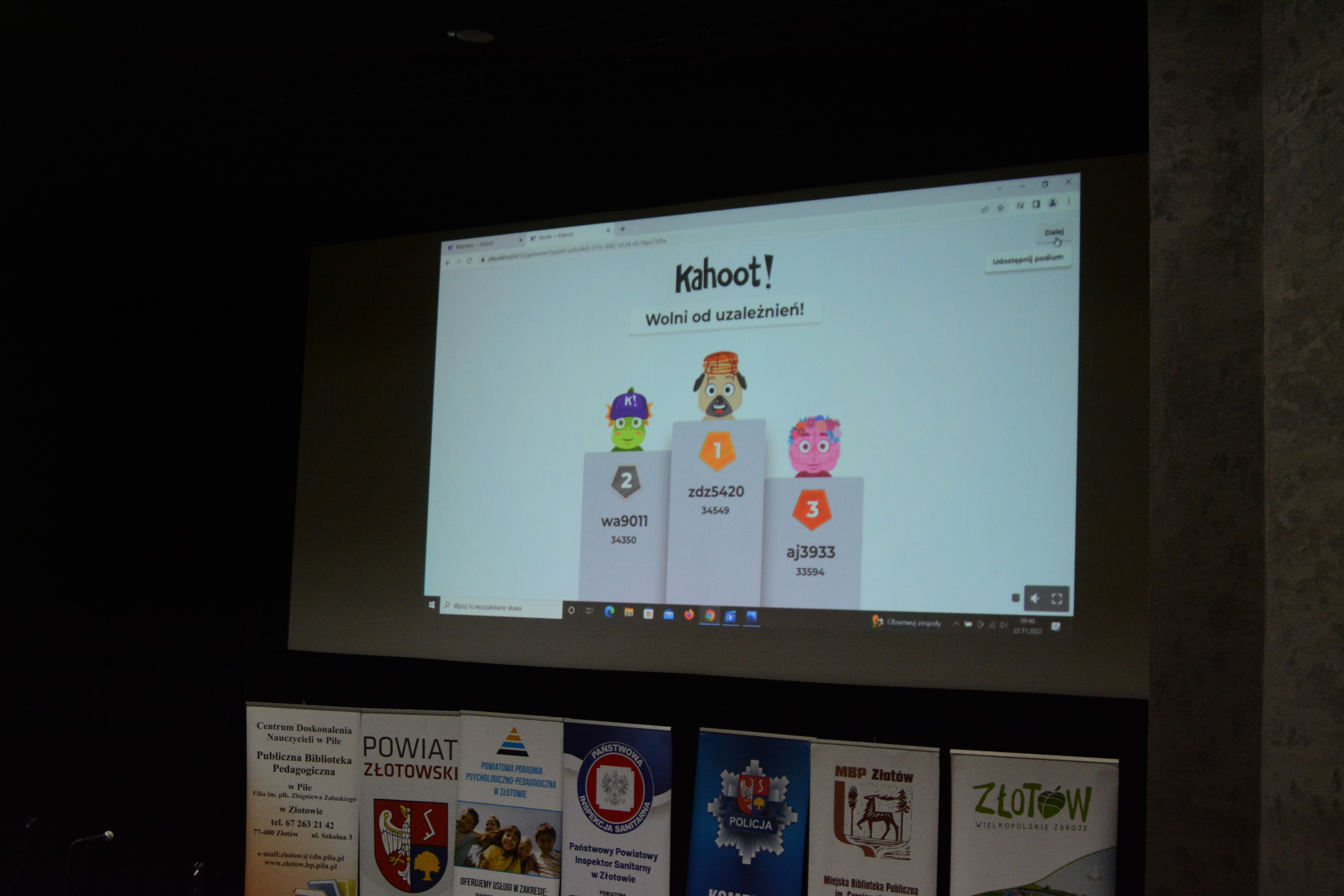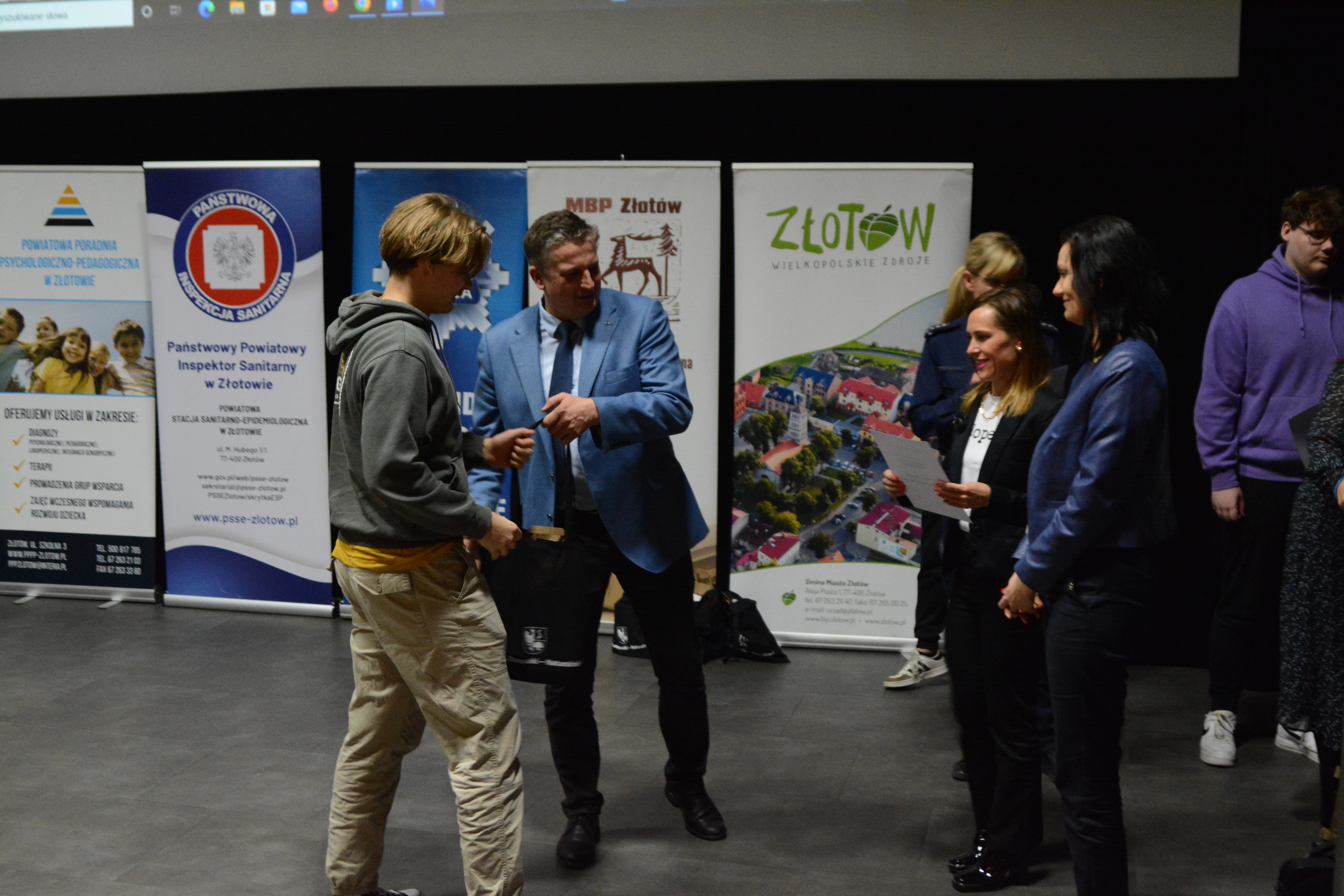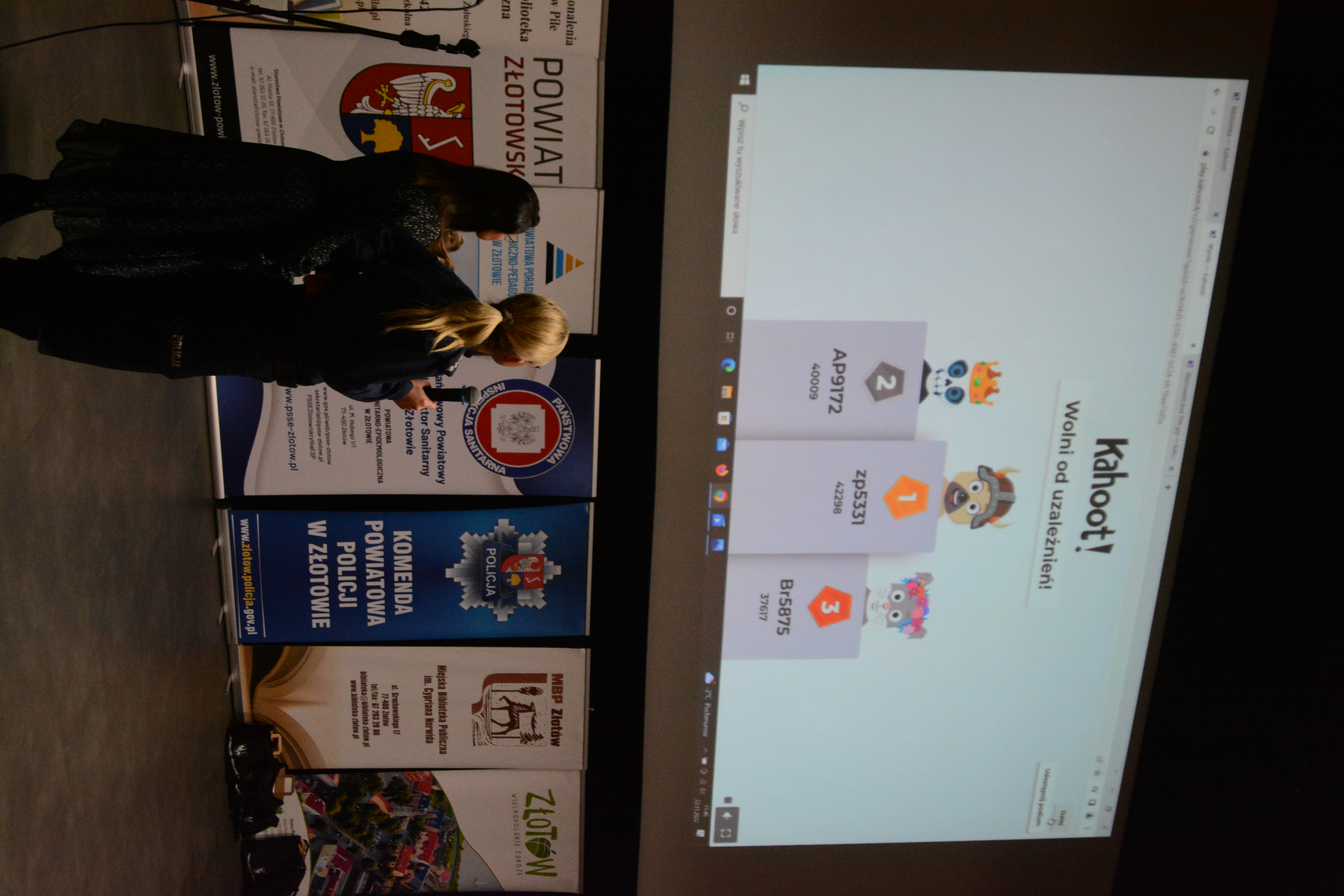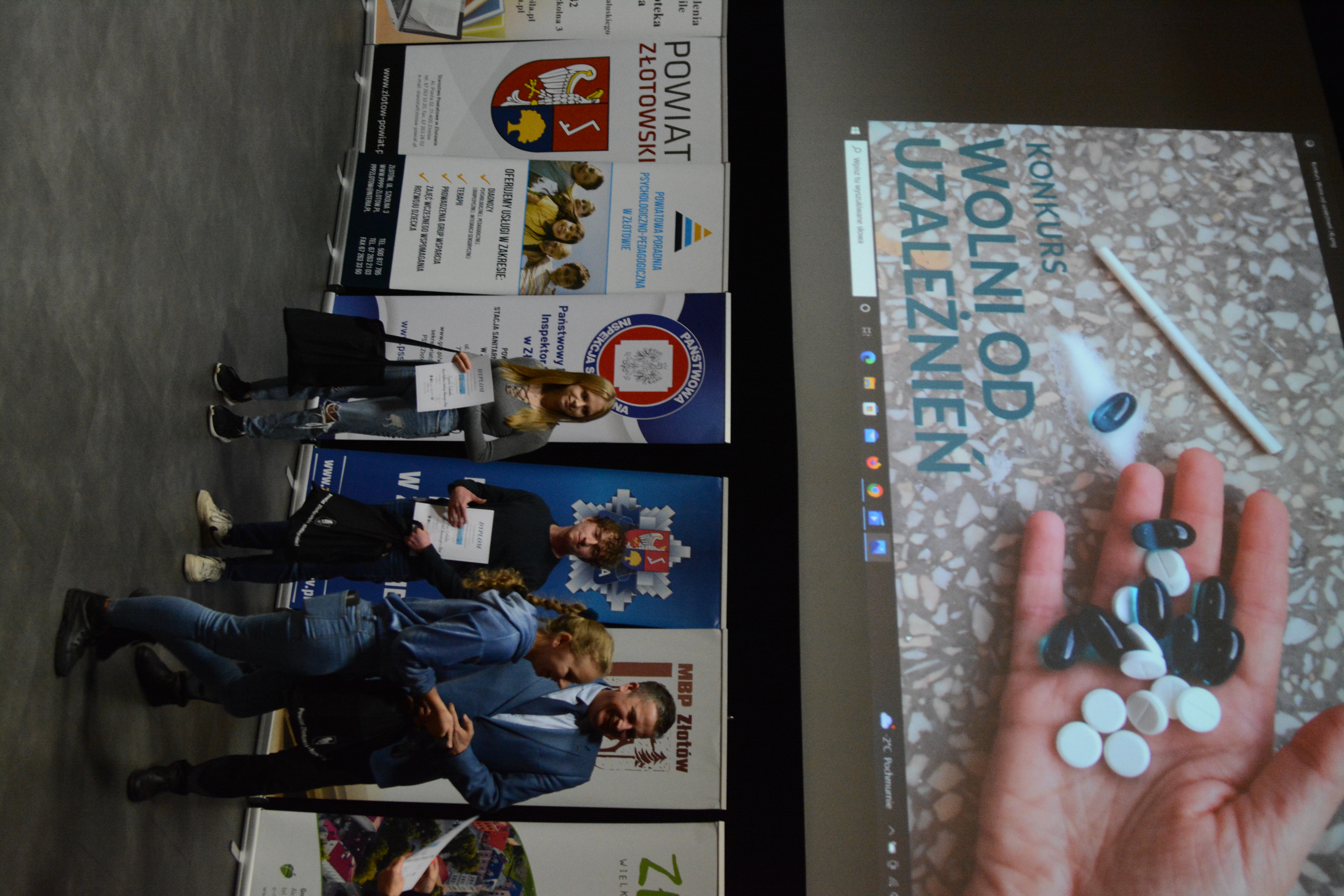 22 listopada w Złotowskim Domu Kultury odbyła się kolejna edycja multimedialnego konkursu organizowanego przez Komendę Powiatową Policji w Złotowie oraz Powiatową Stacją Sanitarno Epidemiologiczną, pod nazwą „Wolni od uzależnień”. Uczestnikom konkursu, któym udało się zdobyć najwięcej punktów w naszym quzie, wręczono nagrody rzeczowe oraz dyplomy.