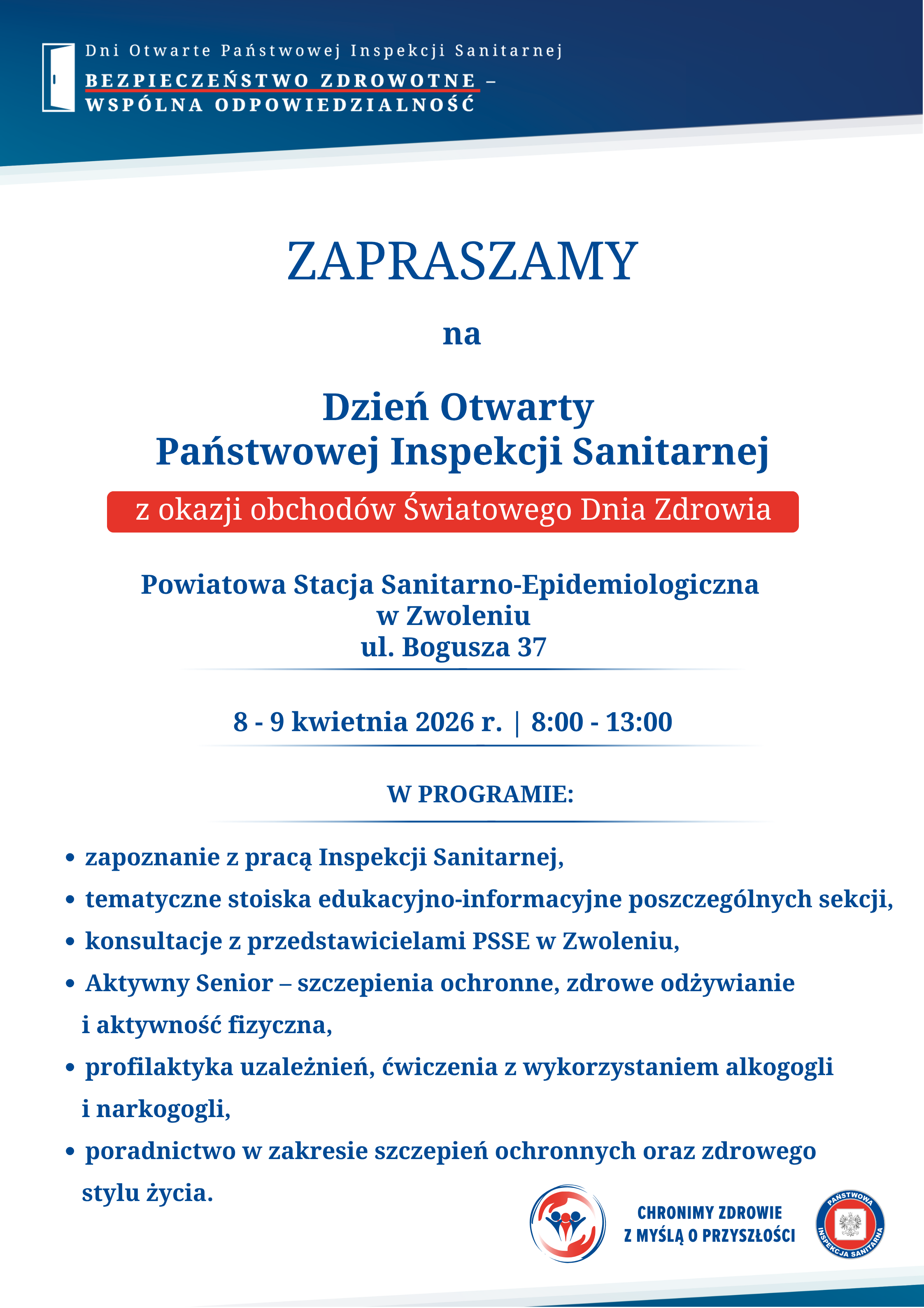 Państwowy Powiatowy Inspektor Sanitarny w Zwoleniu wraz z Pracownikami Powiatowej Stacji Sanitarno-Epidemiologicznej w Zwoleniu zaprasza na: