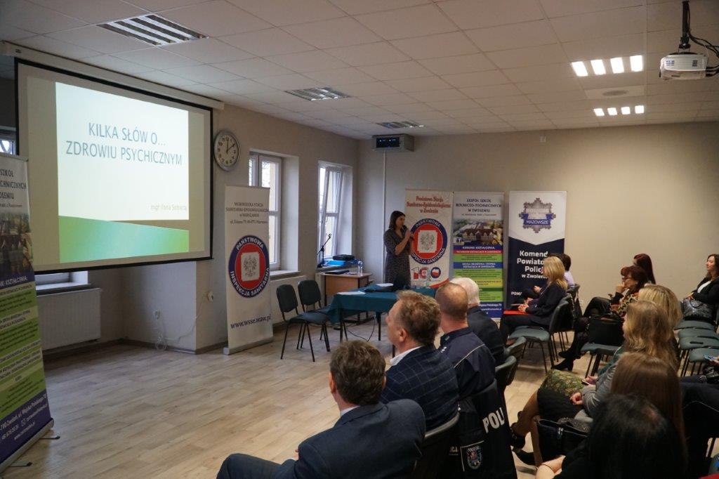W dalszej części spotkania głos zabrali prelegenci. Pierwszą prezentację o tytule „HIV/AIDS czy to nadal aktualny problem?” przedstawiła pani Teresa Maksym – starszy asystent Oświaty Zdrowotnej i Promocji Zdrowia PSSE w Zwoleniu. Następnie pani Barbara Krawiec – kierownik Sekcji Epidemiologii PSSE w Zwoleniu omówiła temat innych chorób przenoszonych drogą płciową. Przedstawicielki policji: Panie Katarzyna Cieślik oraz Katarzyna Słyk, w prezentacji „Narkotyki, dopalacze kradną życie” przybliżyły problem szkodliwości substancji psychoaktywnych. O ogromnym znaczeniu zdrowia psychicznego dla całej kondycji organizmu i dobrej jakości życia mówiła zaś Ilona Sobieraj – psycholog Poradni Psychologiczno-Pedagogicznej.
