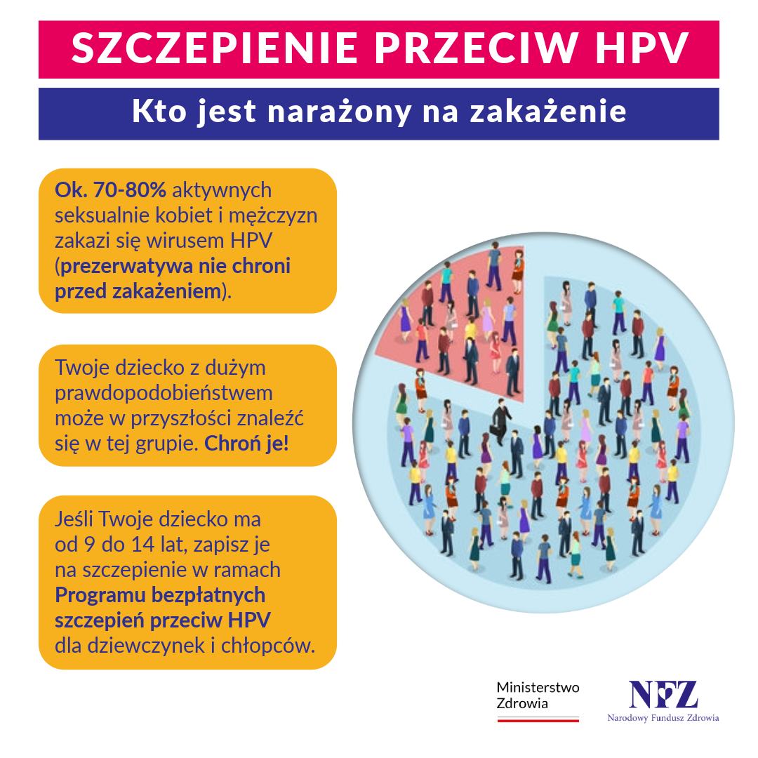 Wirus HPV (Human Papillomavirus) to ludzki wirus brodawczaka. Wyróżnia się ponad 150 typów HPV, w tym typy niskiego ryzyka, które wywołują m.in. niezłośliwe brodawki narządów płciowych (kłykciny) i brodawczaki oraz typy o wysokim potencjale onkogennym, odpowiedzialne za zmiany przedrakowe i raka szyjki macicy oraz inne choroby nowotworowe. Do zakażenia HPV dochodzi drogą płciową, najczęściej w początkowym okresie po rozpoczęciu aktywności seksualnej. W ciągu swojego życia 80% aktywnych seksualnie kobiet i mężczyzn było lub będzie zakażonych HPV.