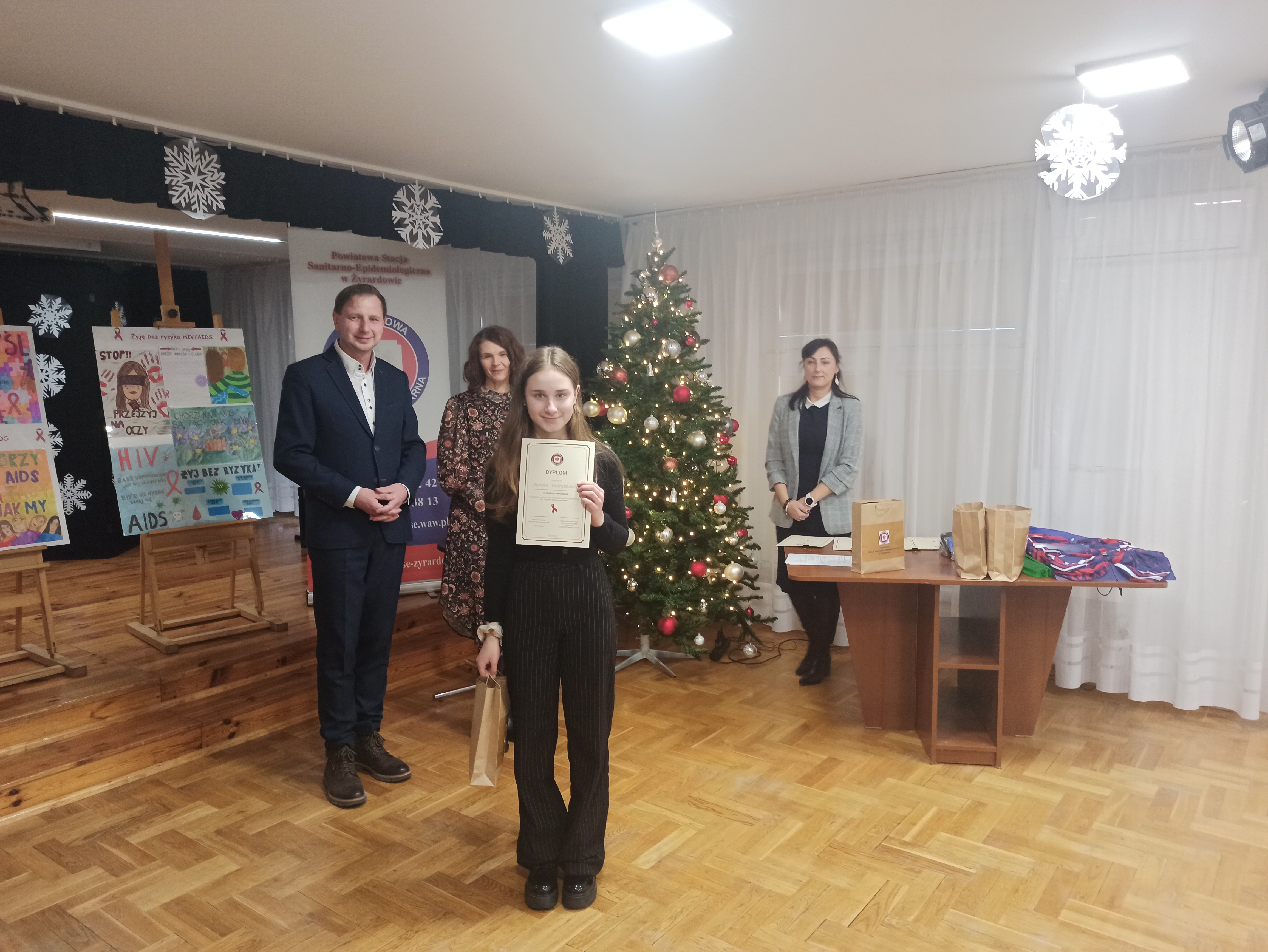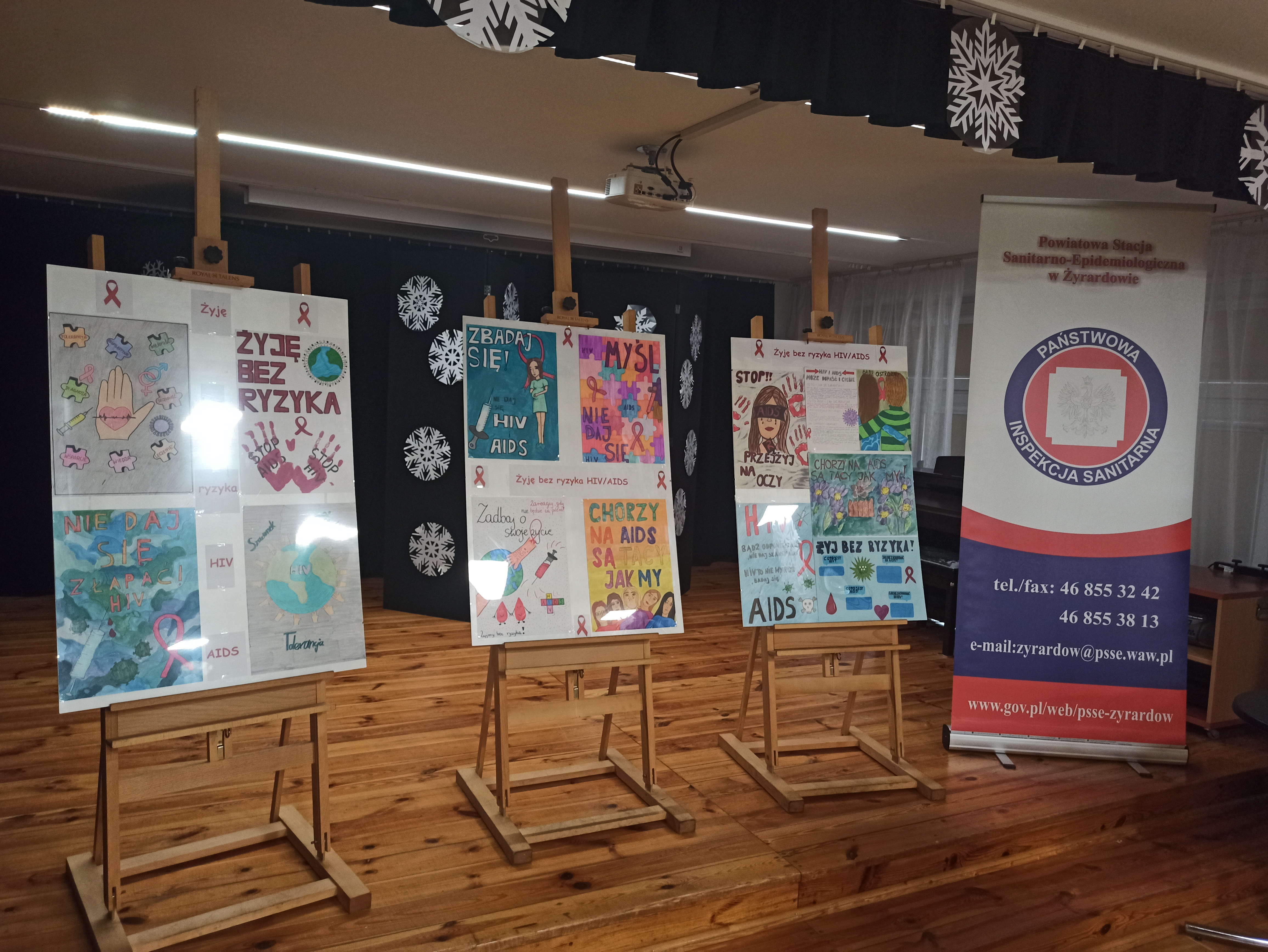 W ramach realizacji Krajowego Programu Zapobiegania Zakażeniom HIV i Zwalczania AIDS na rok 2023 oraz z okazji obchodów Światowego Dnia AIDS wyłoniliśmy i nagrodziliśmy laureatów konkursu plastycznego z zakresu profilaktyki HIV/AIDS organizowanego przez Państwowego Powiatowego Inspektora Sanitarnego w Żyrardowie pn. „Żyję bez ryzyka HIV/AIDS” dla uczniów szkół podstawowych miasta Żyrardowa.
