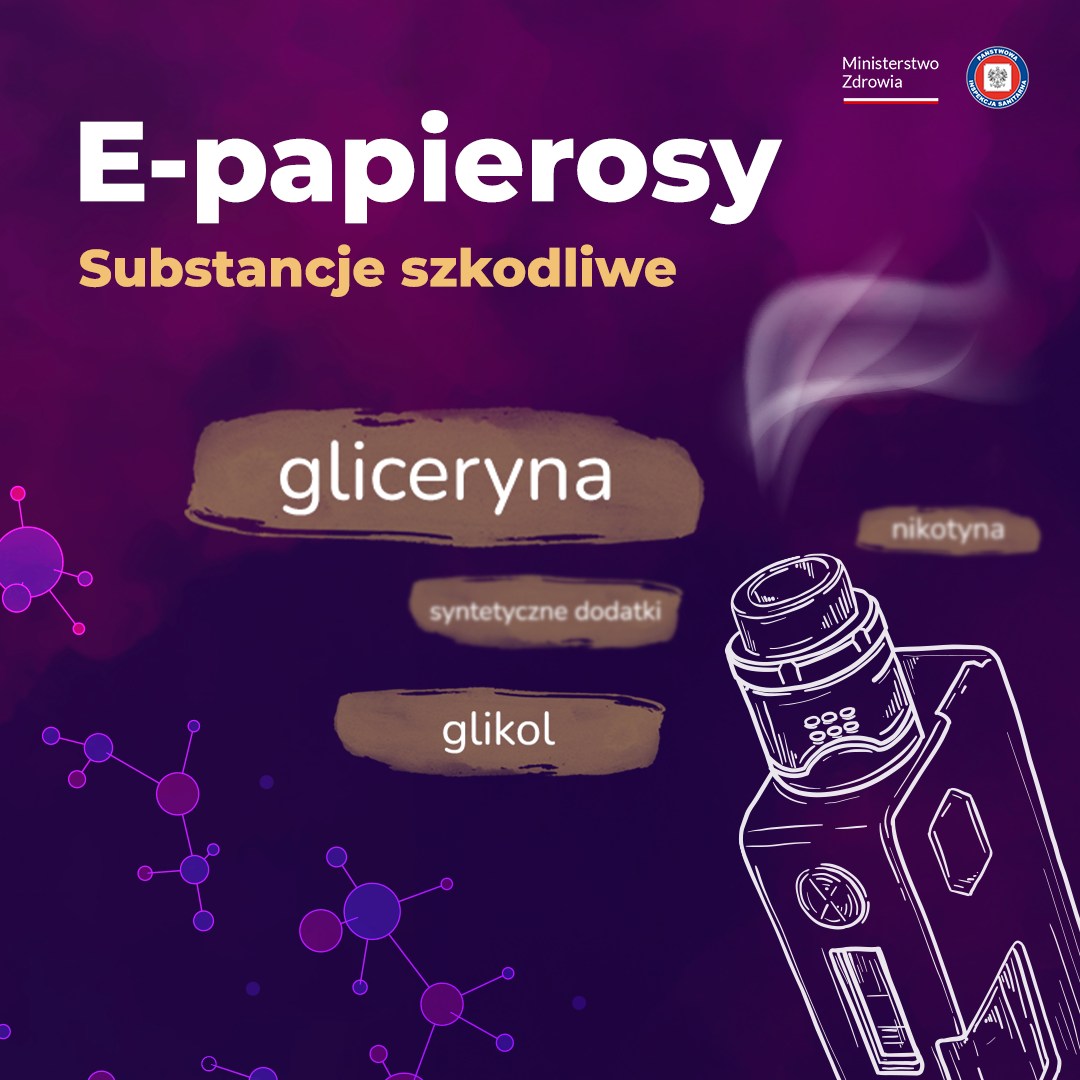 Coraz więcej młodzieży sięga po e-papierosy. E-papieros to elektroniczny system dostarczający nikotynę. Jest to urządzenie elektroniczne, które podgrzewa specjalną ciecz i wytwarza aerozol lub mieszankę małych cząsteczek w powietrzu. E-papieros, zwłaszcza dla młodzieży wygląda atrakcyjnie, więc osłabia to negatywne przekonania na temat wpływu e-papierosów na zdrowie. Niektóre e-papierosy wyglądają jak zwykle papierosy, cygara lub fajki. Inne wyglądają jak pamięć USB, długopisy i inne przedmioty codziennego użytku.