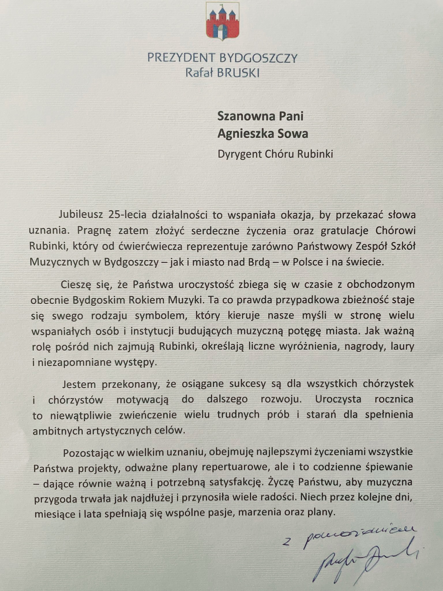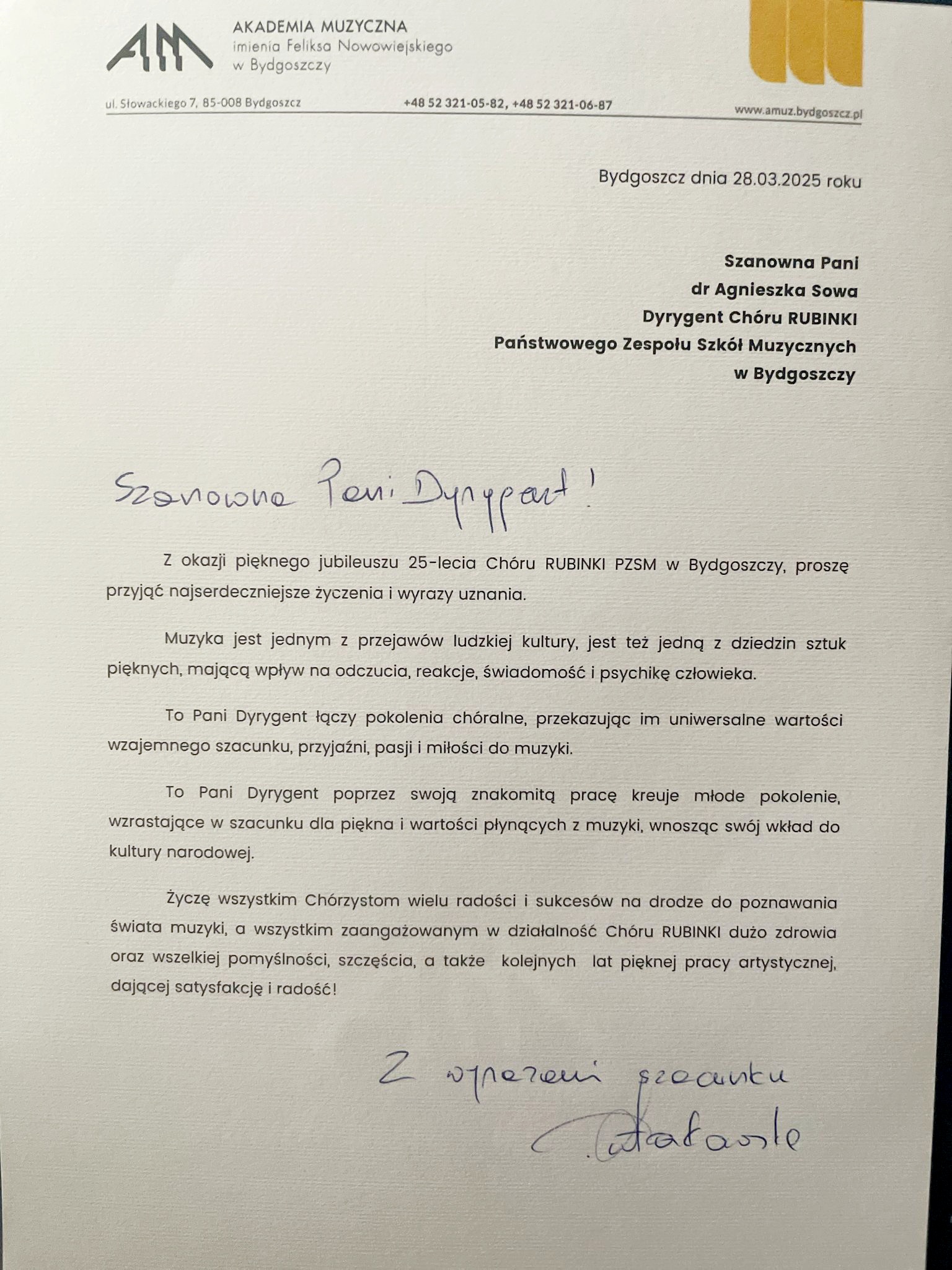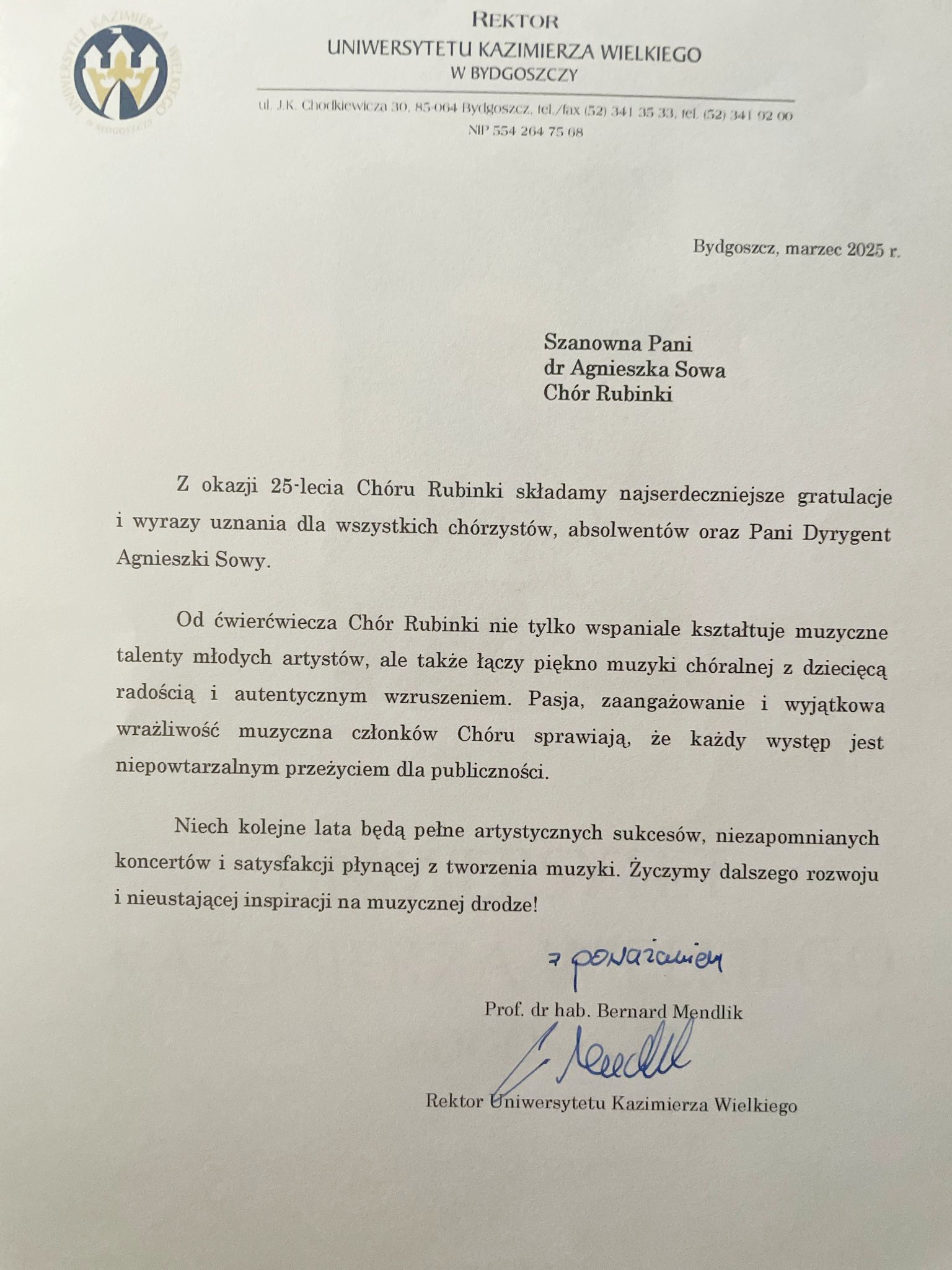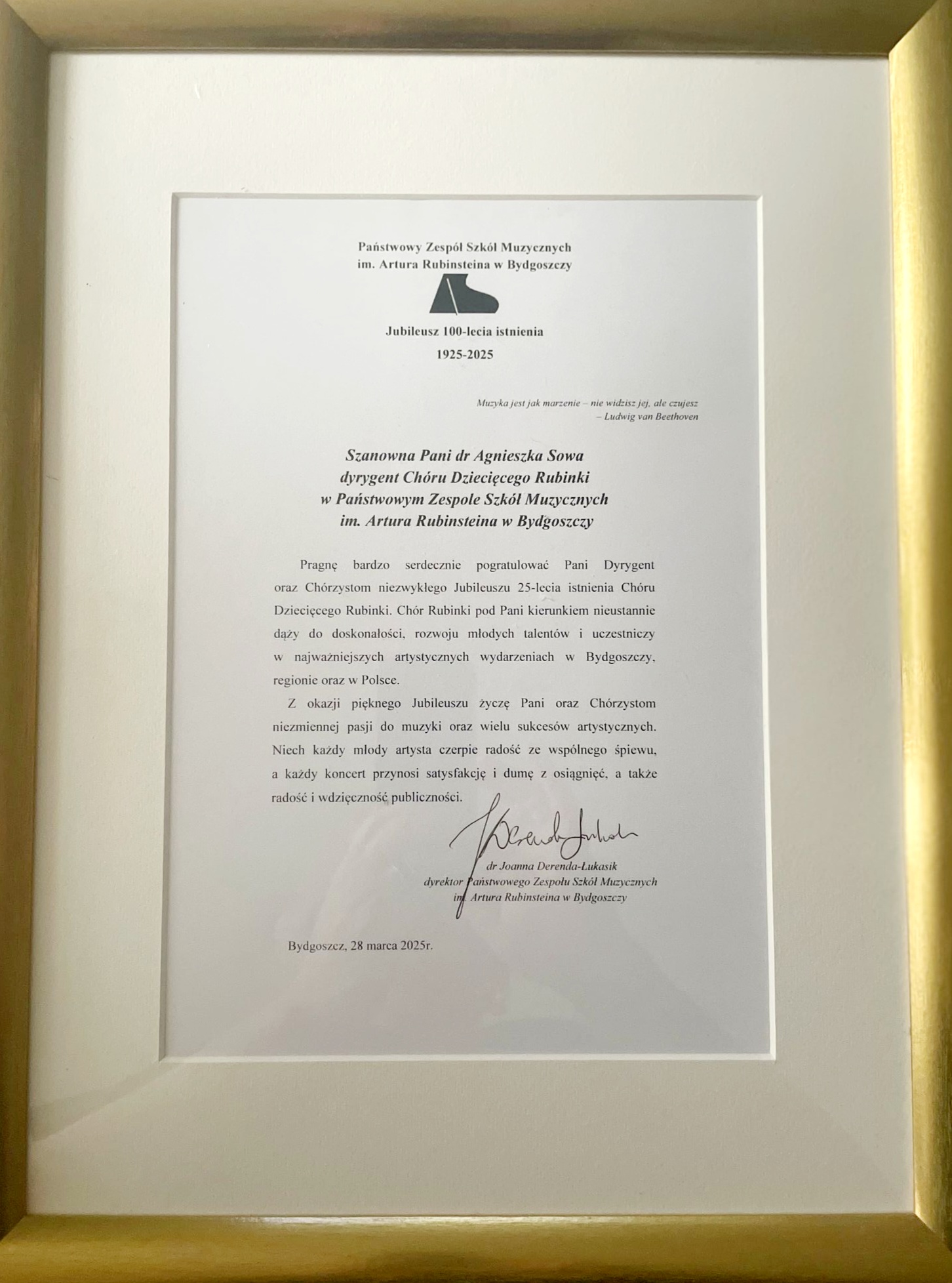 Wieczór 28 marca 2025 to był zdecydowanie Rubinkowy wieczór... i na zawsze pozostanie w naszej pamięci. Wspaniali Artyści na estradzie Filharmonii Pomorskiek im. I. J. Paderewskiego w Bydgoszczy, a bohaterami wieczoru był Chór Dziecięcy Rubinki i dr Agnieszka Sowa - dyrygent. Jubileusz 25-lecia naszych Rubinek połączył pokolenia... cudowne chwile, z "anielskimi" głosami, które zabrały nas do niezwykłą muzyczną podróż pod przewodnictwem dr Agnieszki Sowy. Arkadiusz Szopa, jak zawsze niezastąpiony, zagrał na fortepianie! Cała społeczność szkolna dziękuję za te 25 lat wzruszeń i niezwykłych koncertów. Życzymy dalszego pięknego rozwoju, nowych wyzwań oraz sięgania coraz wyżej i niekończących się fraz - długich i zachwycających! GratulujeMY!!!