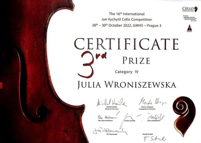 Nasze Uczennice z klasy wiolonczeli mgr Iwony Michalak zdobyły II i III miejsce na Międzynarodowym Konkursie Wiolonczelowym w Pradze. Prezentacje konkursowe współtworzył przy fortepianie pan Adam Zok. Gratulujemy i życzymy dalszych sukcesów!