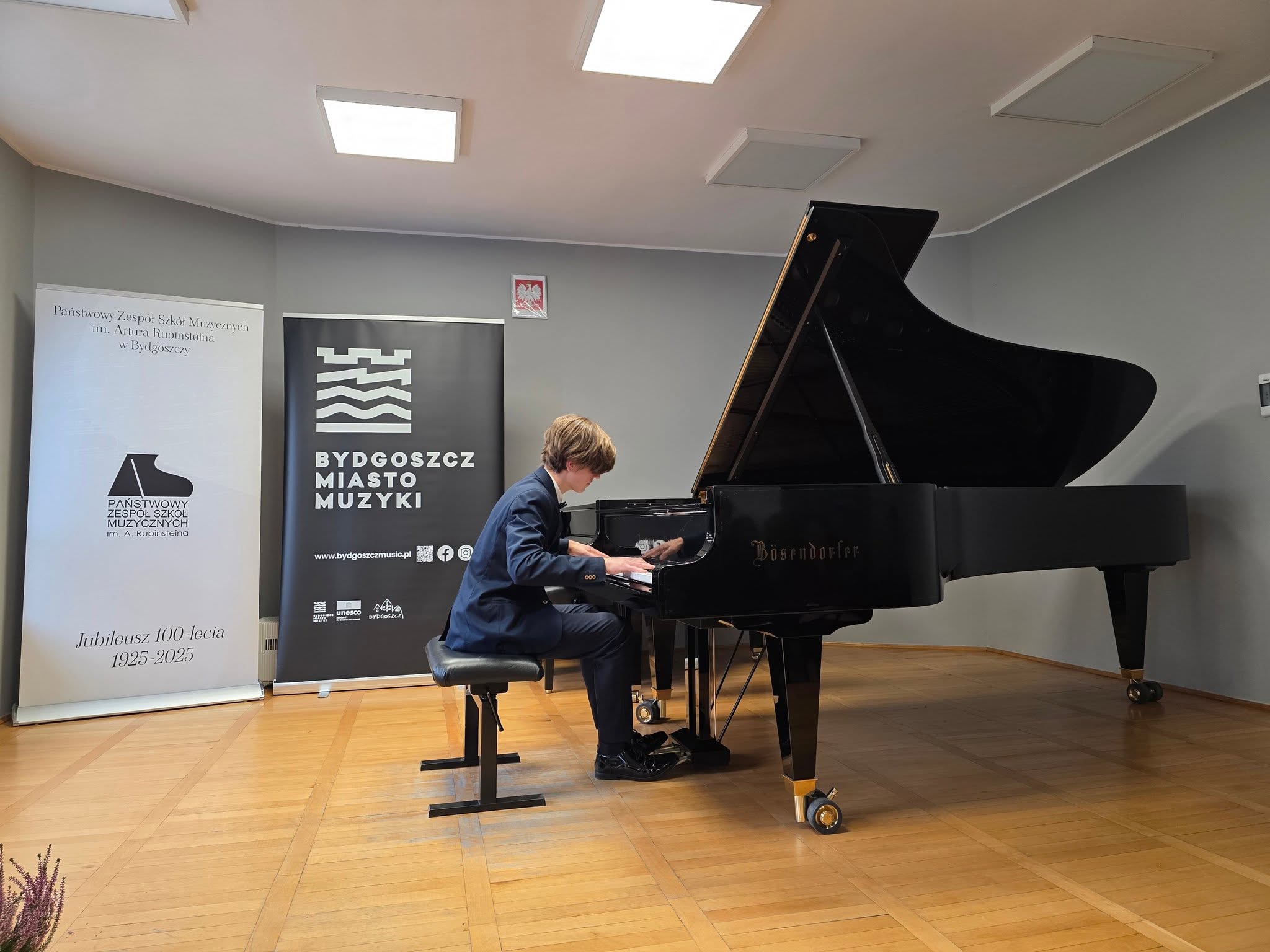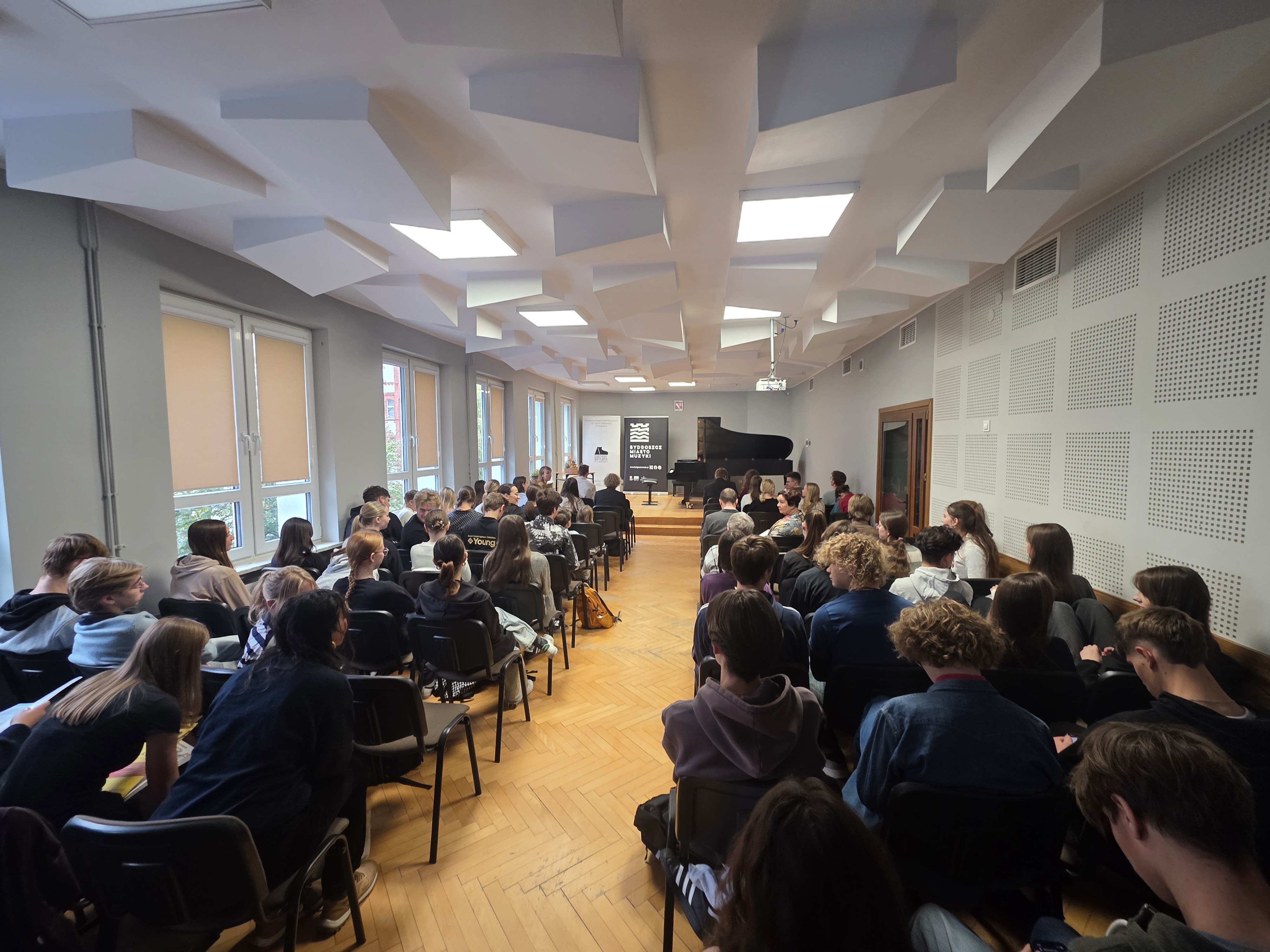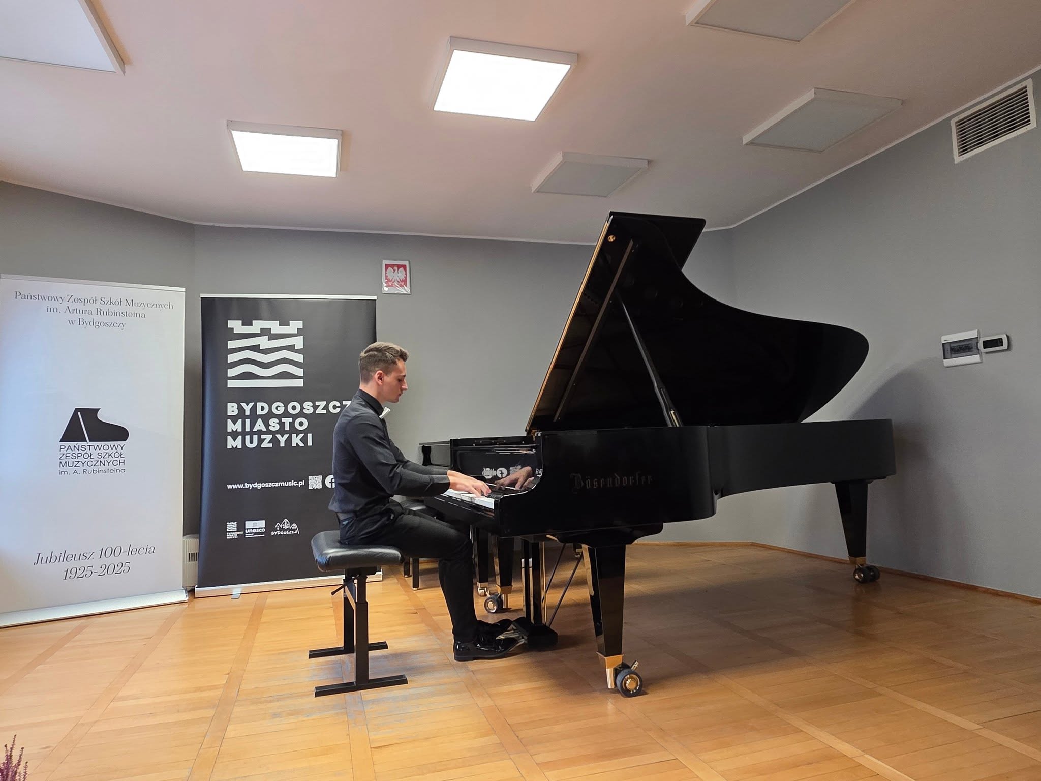 Kolejny piękny koncert za nami. Z okazji 100-lecia naszej Szkoły, w Bydgoskim Roku Muzyki - Bydgoszcz Miasto Muzyki Unesco - nasi Uczniowie zaprezentowali się podczas wydarzenia Próba Dźwięku. Na fortepianie zagrali Tymon Klekotko z klasy dr hab. Piotra Kępińskiego, Damian Leśniewski z klasy dr hab. Agaty Nowakowskiej-Gumieli oraz Cezary Zok z klasy dr hab. Magdaleny Swatowskiej. Uczniowie Jakub Marszałek i Zofia Powała poprowadzili koncert. Gratulujemy bardzo serdecznie i dziękujemy Nauczycielom za przygotowanie - Panu Adamowi Zokowi, Pani Annie Nakielskiej-Kowalskiej oraz Pani Aleksandrze Sionkowskiej.