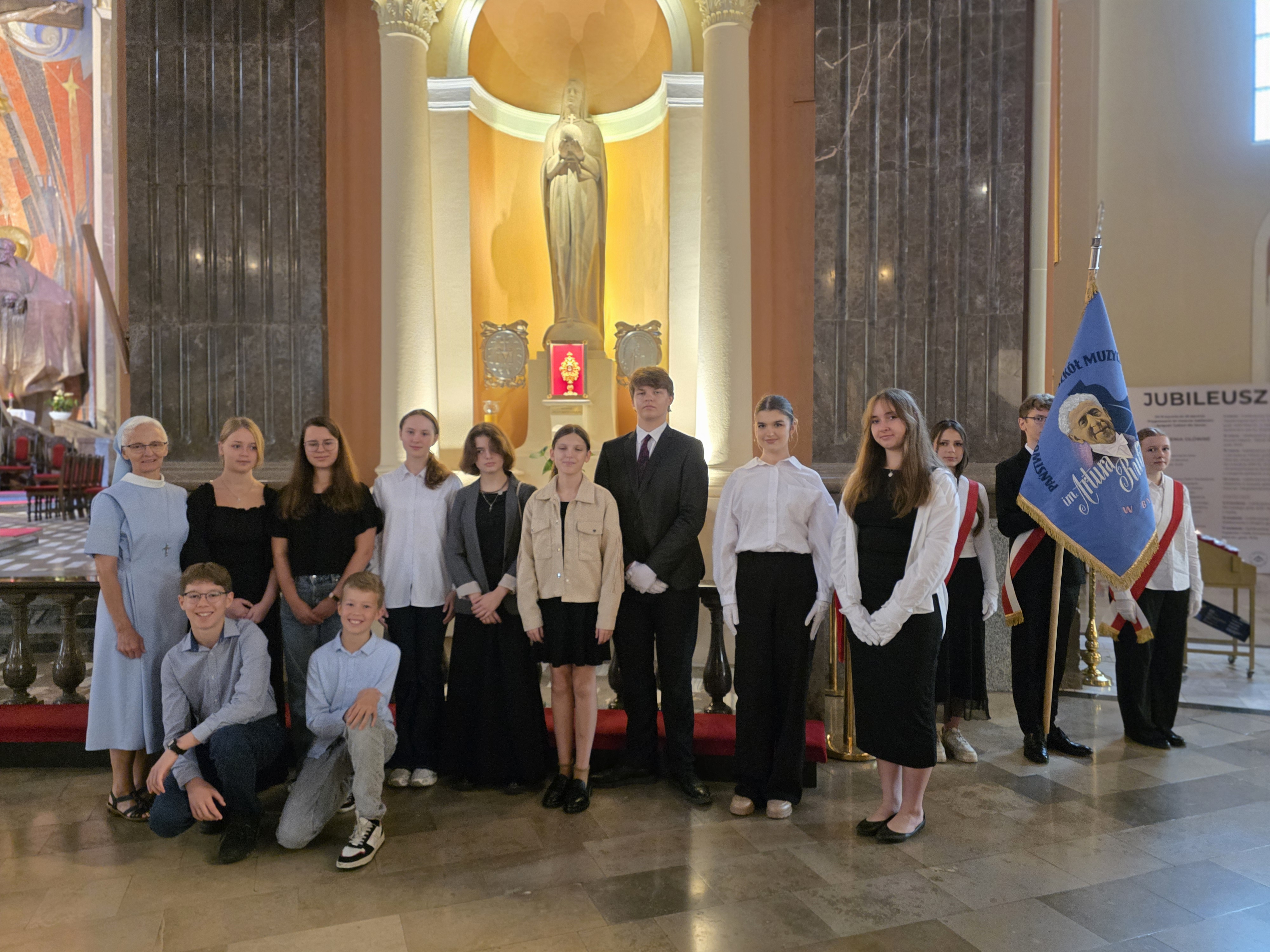 21 września br. społeczność Państwowego Zespołu Szkół Muzycznych im. Artura Rubinsteina w Bydgoszczy, a także absolwenci i bydgoszczanie uczestniczyli we Mszy Świętej z okazji 100-lecia naszej Szkoły w Bydgoskiej Bazylice. Było niezwykle uroczyście, wzruszająco i po prostu pięknie... dziękujemy Proboszczowi Bazyliki Księdzu Sławomirowi Barowi za gościnność i za Słowo, dyrygent prof. dr hab. Aleksandrze Gruczy-Rogalskiej za przygotowanie i poprowadzenie Chóru Mieszanego II stopnia, dr Januszowi Staneckiemu - kierownikowi sekcji dętej za przygotowanie i koordynację zespołu dętego, siostrze Gabrieli Tacicy dziękujemy za skoordynowanie udziału uczniów podczas liturgii. Wicedyrektorowi Markowi Kowalskiemu dziękujemy za opiekę nad pocztem sztandarowym, obecnym Nauczycielom, którzy pełnili opiekę nad młodzieżą. A ponad wszystko dziękujemy naszym Wspaniałym Ucznennicom i Uczniom za cudowne wzbogacenie swoim śpiewem, grą oraz czytaniem i modlitwą przy ołtarzu Jubileuszowej Mszy Świętej. Dziękujemy za udział Gronu Pedagogicznemu oraz Rodzinom!