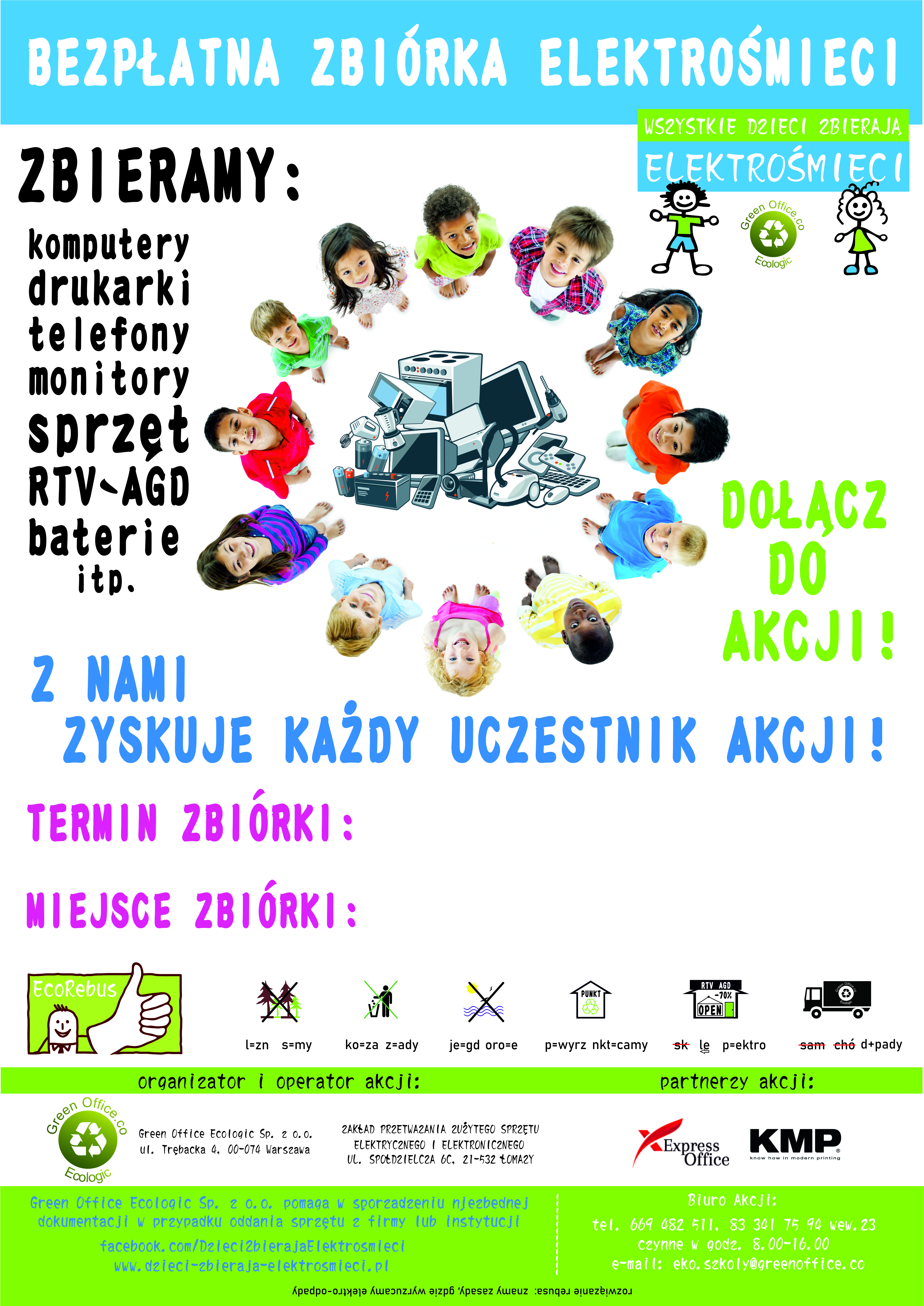 W ramach Akcji Ekologicznej „ Wszystkie dzieci zbierają elektrośmieci” w szkole zbieramy zużyty sprzęt elektryczny i elektroniczny. Akcja trwa do 18 października br. Za każdą tonę zebranego sprzętu szkoła otrzyma bon o wartości 150 złotych na zakup sprzętu sportowego lub materiałów edukacyjnych. Liczymy na zaangażowanie Uczniów i Rodziców.