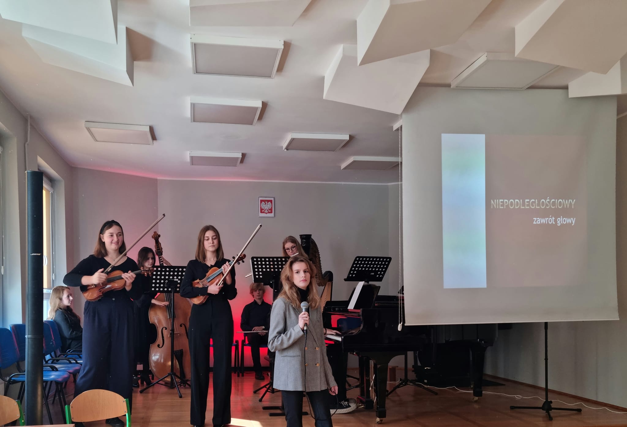 W dniu 7 listopada w sali kameralnej naszej szkoły odbył się "Niepodległościowy Zawrót Głowy" przygotowany przez naszych Uczniów oraz Nauczycieli (mgr Joannę Tokarewicz, mgr Katarzynę Wrembel, mgr Joannę Urbaniak, mgr Zbigniewa Kruszyńskiego, mgr Annę Świecę i mgr Marcelinę Schwedę) z okazji Święta Niepodległości odchodzonego dnia 11 listopada.