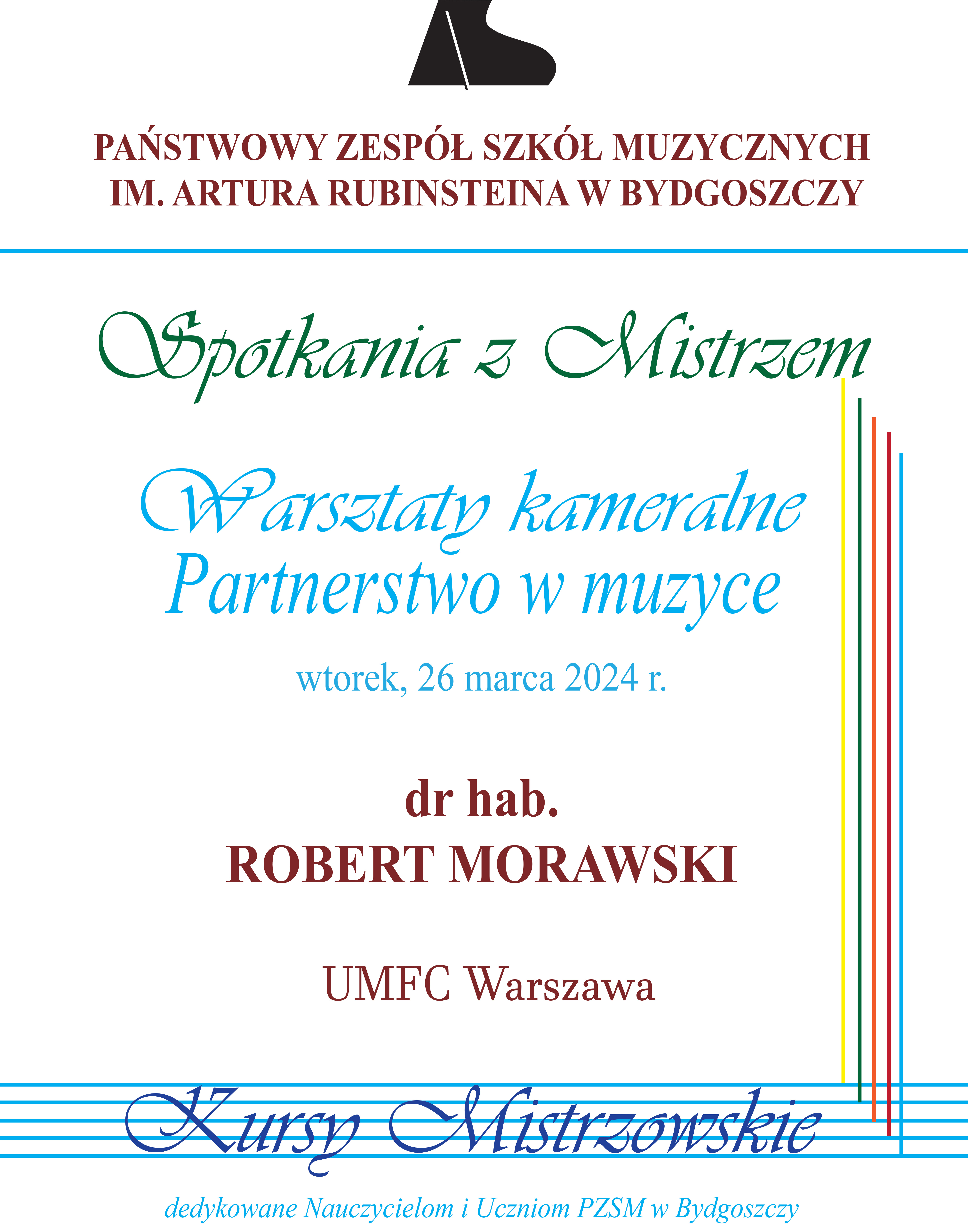 26 marca br. w naszej Szkole odbędzie się Kurs Mistrzowski - dedykowany Nauczycielom oraz Uczniom - w ramach rozwoju gry kameralnej "Partnerstwo w Muzyce". Warsztaty poprowadzi znakomity kameralista, dr hab. Robert Morawski, prof. UMFC w Warszawie.