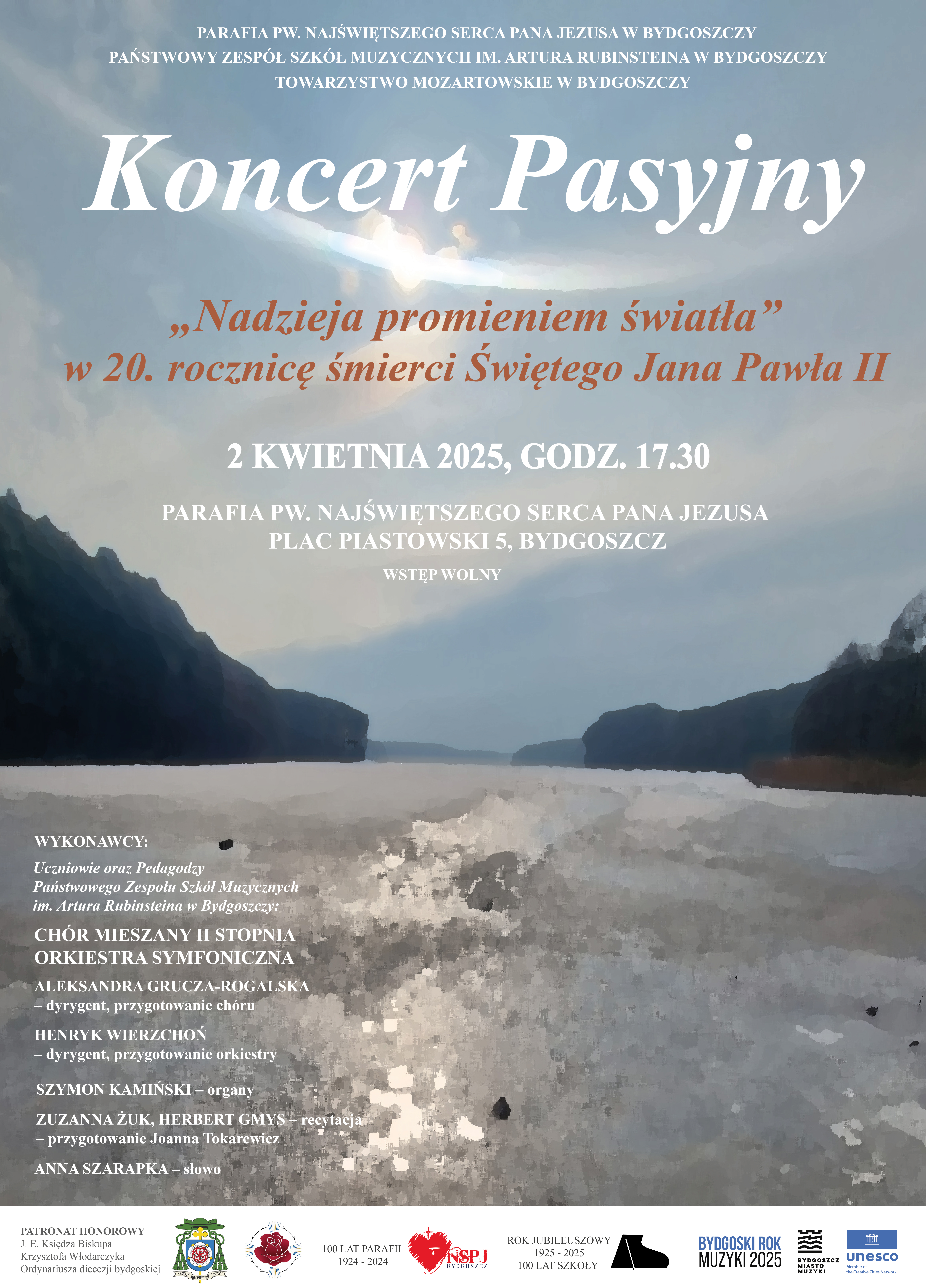 Zapraszamy 2 kwietnia na Koncert Pasyjny w wykonaniu naszych Uczniów i Pedagogów. Wystąpi Chór Mieszany II stopnia pod dyrekcją prof. Aleksandry Gruczy-Rogalskiej oraz Orkiestra Symfoniczna pod dyrekcją prof. Henryka Wierzchonia. Na organach zagra nasz Uczeń Szymon Kamiński, a recytację poprowadzą Uczniowie Zuzanna Żuk i Herbert Gmys (przygotowanie Joanna Tokarewicz). Słowo koncertowe - dr hab. Anna Szarapka. Wstęp wolny!