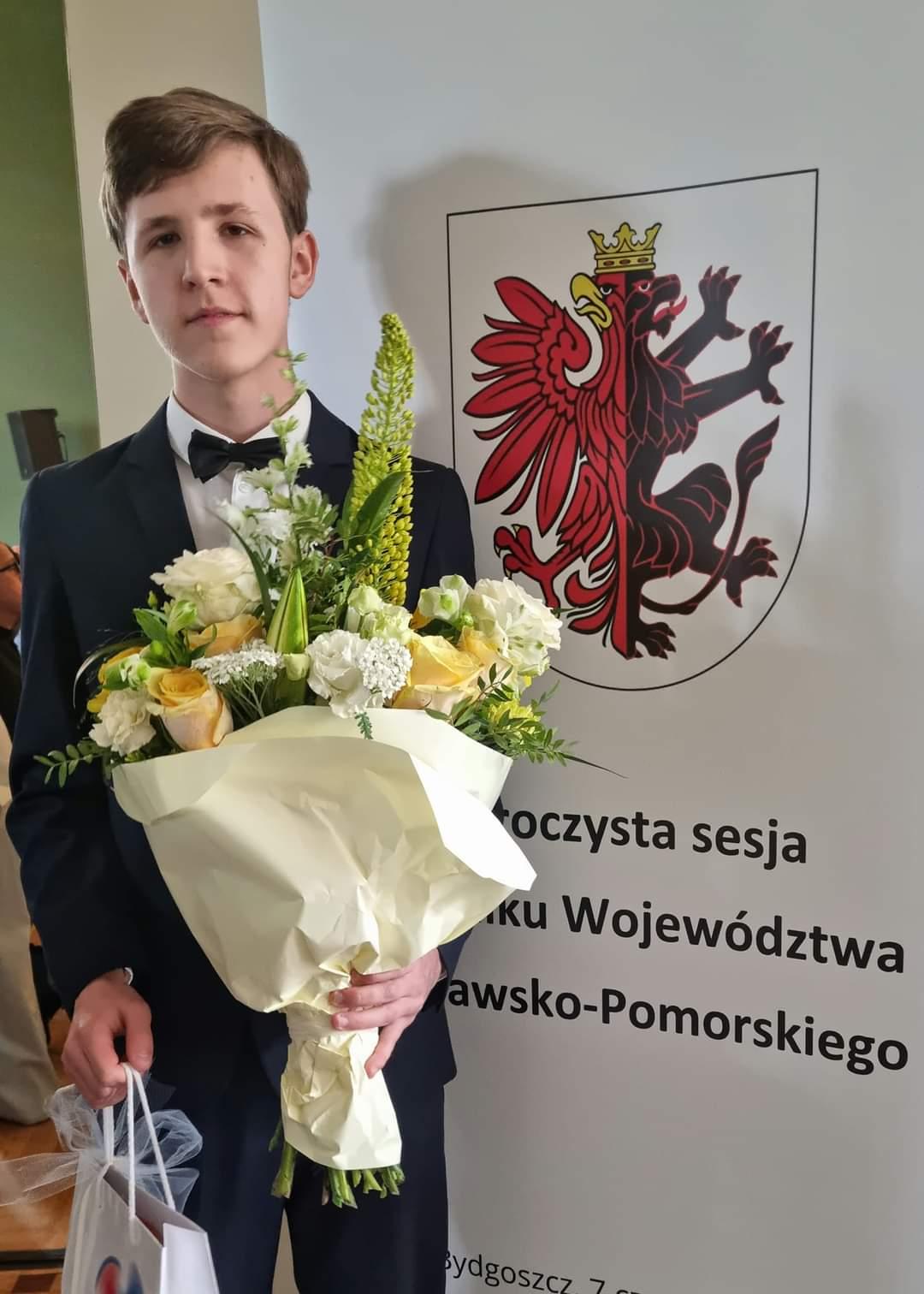 Dopełnieniem uroczystości był koncert fortepianowy utworów Fryderyka Chopina w wykonaniu Cezarego Zoka, ucznia Ogólnokształcącej Szkoły Muzycznej II Stopnia w Państwowym Zespole Szkół Muzycznych im. Artura Rubinsteina w Bydgoszczy. Poczet sztandarowy i naszą Szkołę godnie reprezentowali również nasi Uczniowie: Julia Starybrat, Aleksander Przybyłek i Maria Wezner. Gratulujemy!