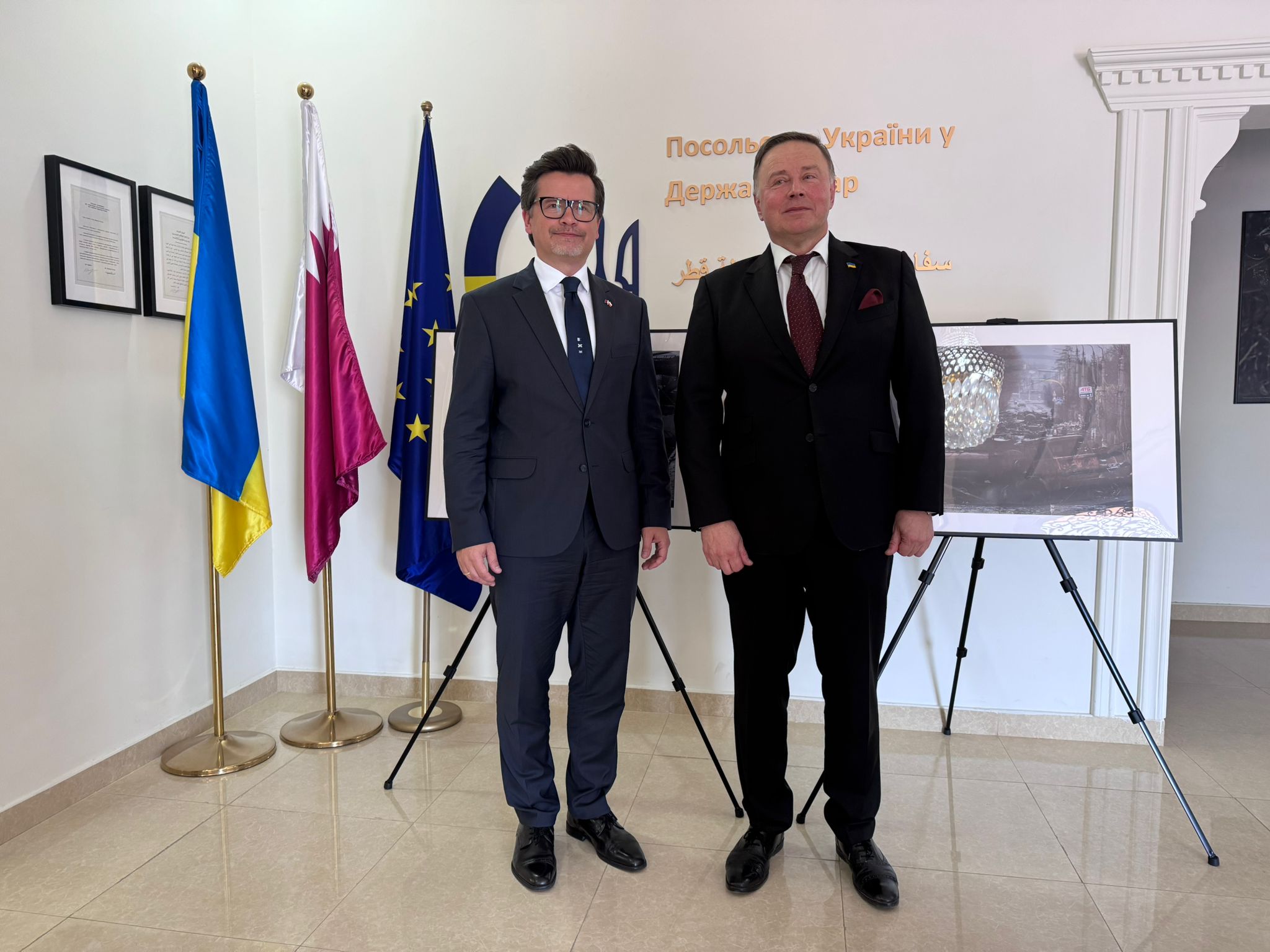 The Ambassador of the Republic of Poland to the State of Qatar, Tomasz Sadziński, took part in a meeting of Heads of Mission of EU Member States represented in Doha, held at the Embassy of Ukraine on the occasion of the 4th anniversary of the launch of Russia’s illegal, full-scale aggression against Ukraine. The ambassadors of Canada and Moldova also attended the event.