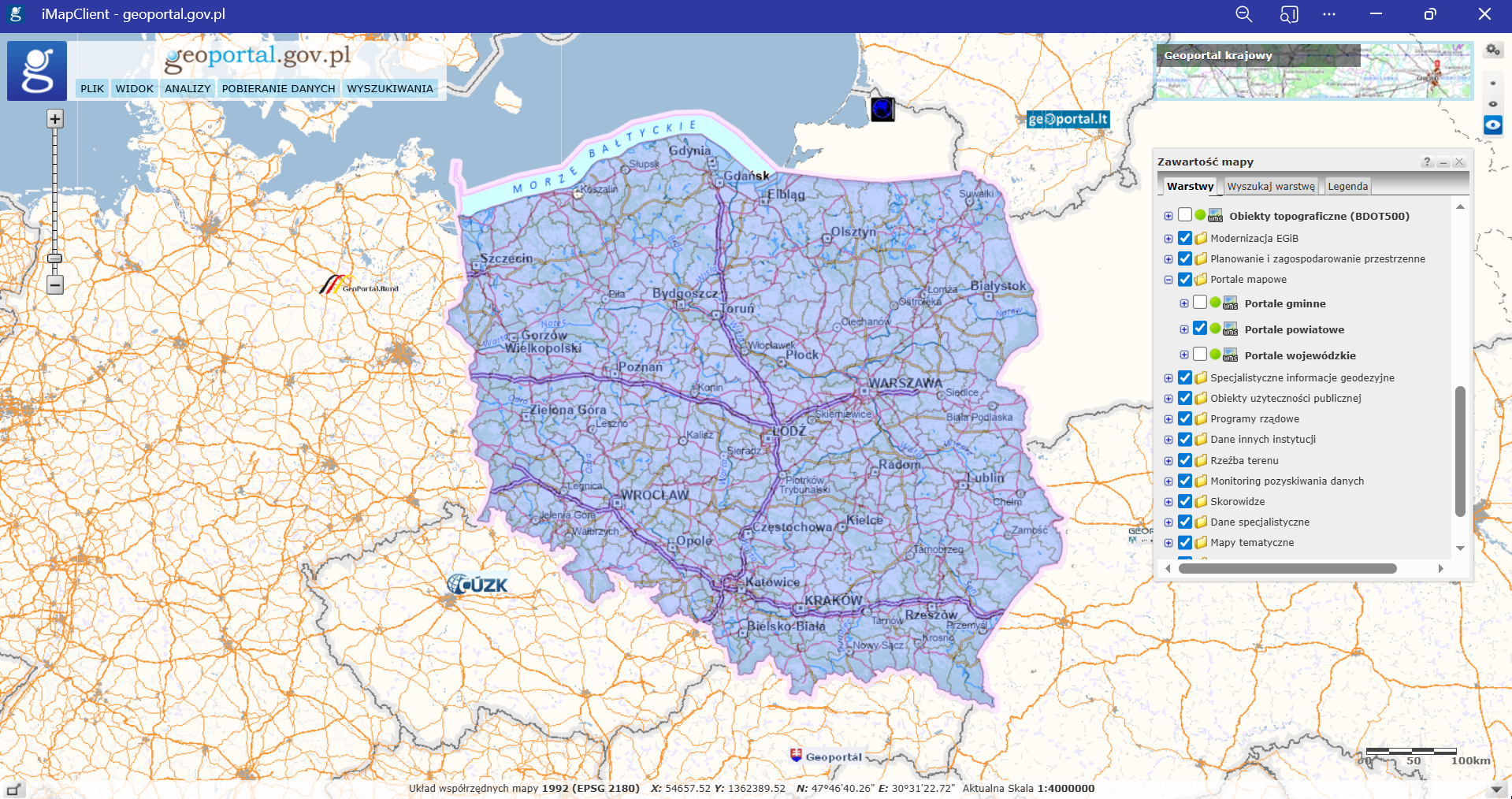 Adres usługi https://mapy.geoportal.gov.pl/wss/ext/PortaleMapowe