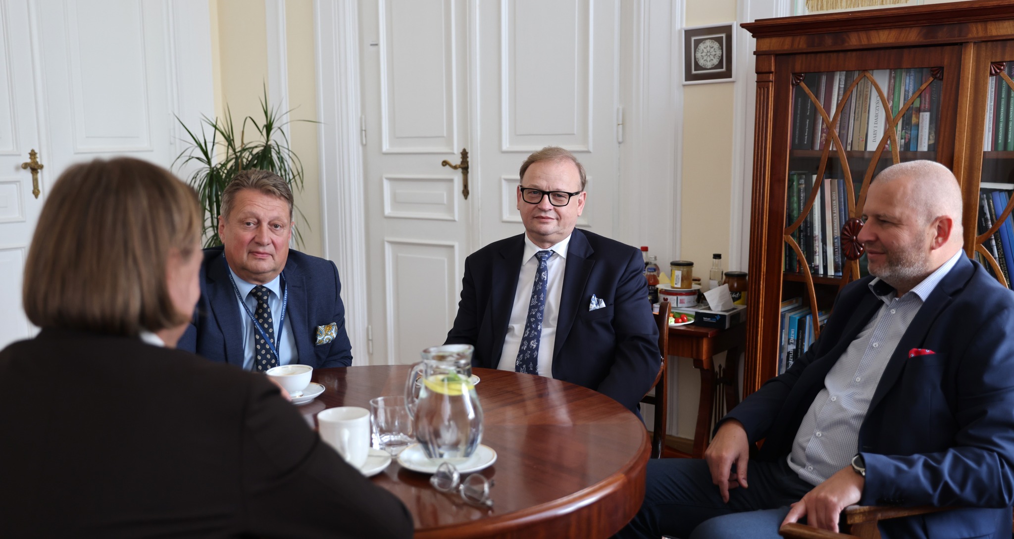 W siedzibie Mazowieckiego Urzędu Wojewódzkiego w Warszawie odbyło się spotkanie pomiędzy Wojewodą Mazowieckim Mariuszem R. Frankowskim, Dyrektorem Generalnym Pawłem Cukrowskim, a Prezesem RARS Janem Rajchelem i Zastępcą Prezesa Andrzejem Hawrylukiem. Tematem rozmów było planowanie wspólnych działań, które wzmocnią bezpieczeństwo mieszkańców Mazowsza i zwiększą odporność społeczności na zagrożenia.