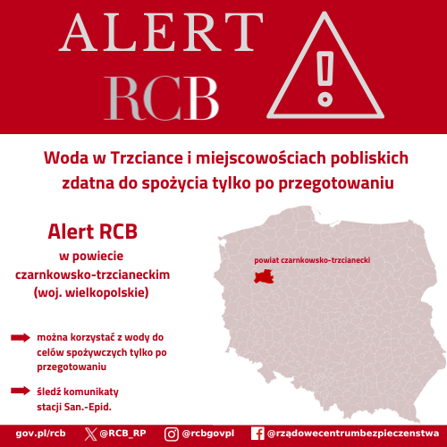 Alert RCB o tej treści został przesłany do odbiorców na terenie powiatu czarnkowsko-trzcianeckiego (woj. wielkopolskie).