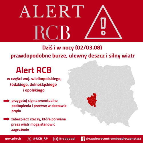 Alert RCB – burze, ulewny deszcz i silny wiatr (02/03.08)