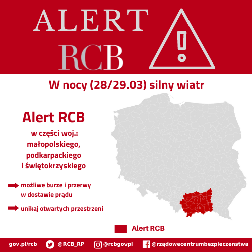 Alert RCB – silny wiatr (28/29.03)