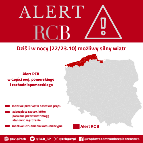 Alert RCB (22/23.10) – bardzo silny wiatr