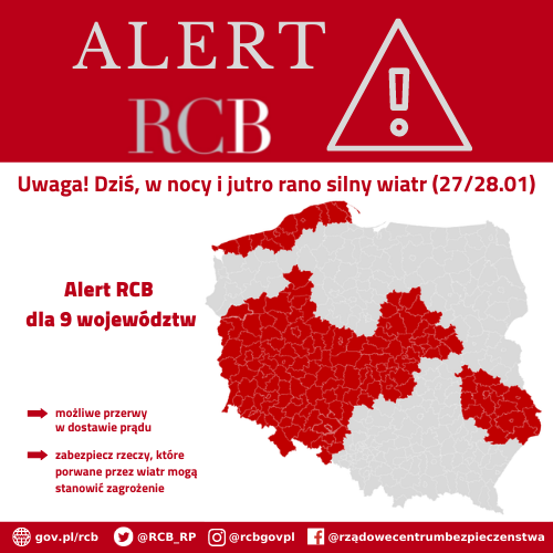 Alert RCB (27/28.01) – silny wiatr