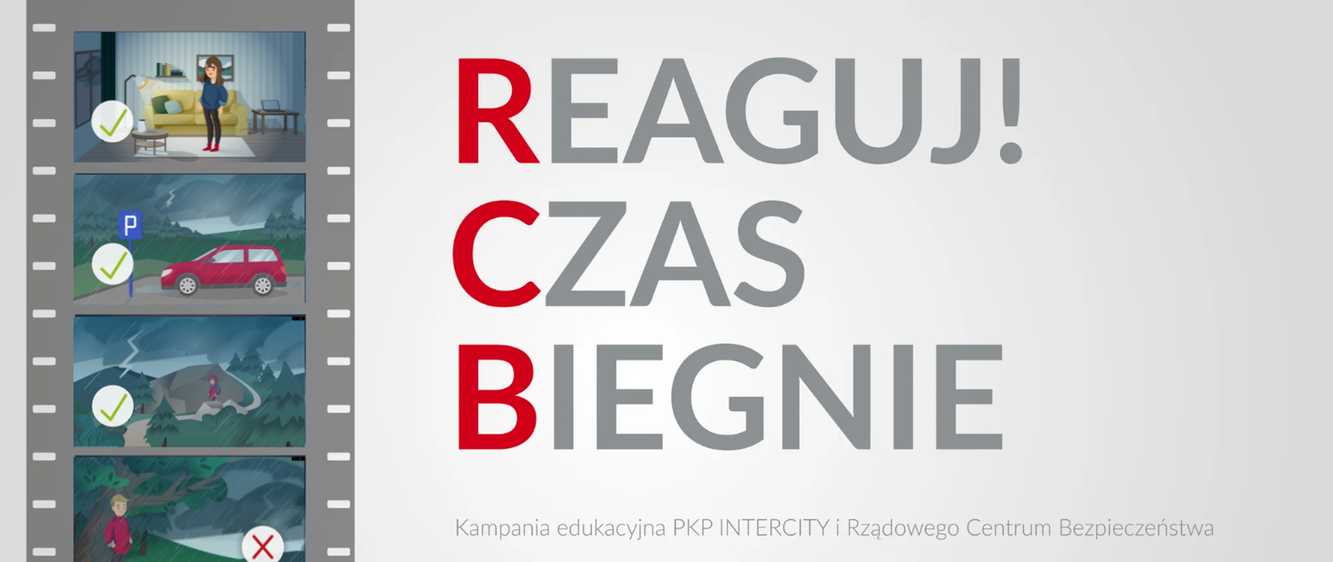 Pierwsze dni wiosny to również start drugiej odsłony wspólnej kampanii edukacyjno-informacyjnej Rządowego Centrum Bezpieczeństwa i narodowego przewoźnika. W kolejnej części kampanii „Reaguj! Czas Biegnie” na ekranach pociągów zobaczymy najważniejsze zasady postępowania podczas burzy.
