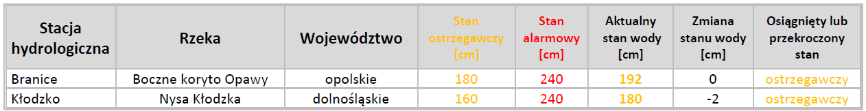 STAN OSTRZEGAWCZY – odnotowano przekroczenia na 6 stacjach wodowskazowych w dorzeczu Wisły i 7 stacjach w dorzeczu Odry.