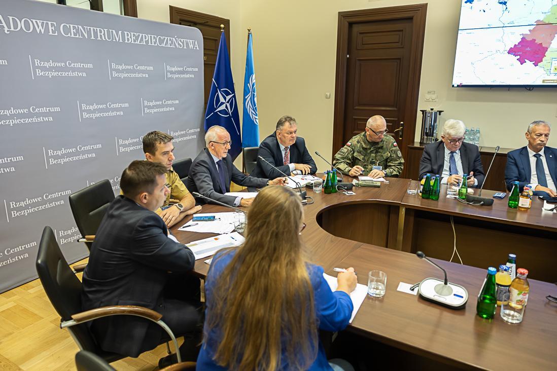 Podczas spotkania w Rządowym Centrum Bezpieczeństwa komendant główny PSP nadbrygadier Mariusz Feltynowski przedstawił informację o przygotowaniach Państwowej Straży Pożarnej do intensywnych opadów deszczu.