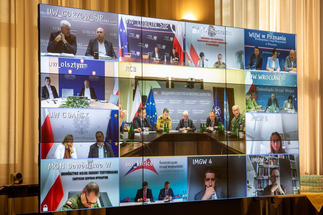 Odprawa kierownictwa MSWiA oraz RCB ze służbami i wojewodami w sprawie prognozowanych intensywnych opadów deszczu