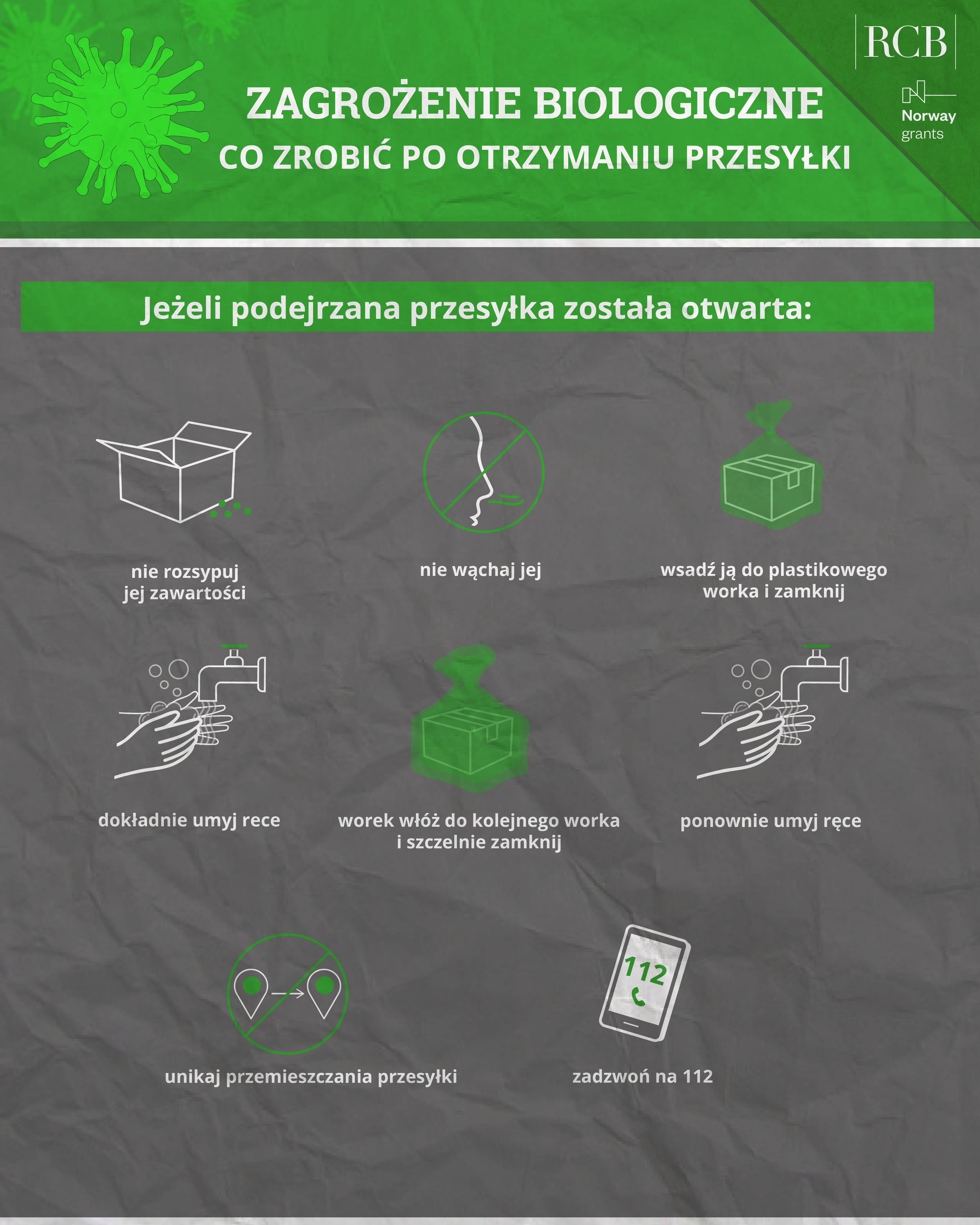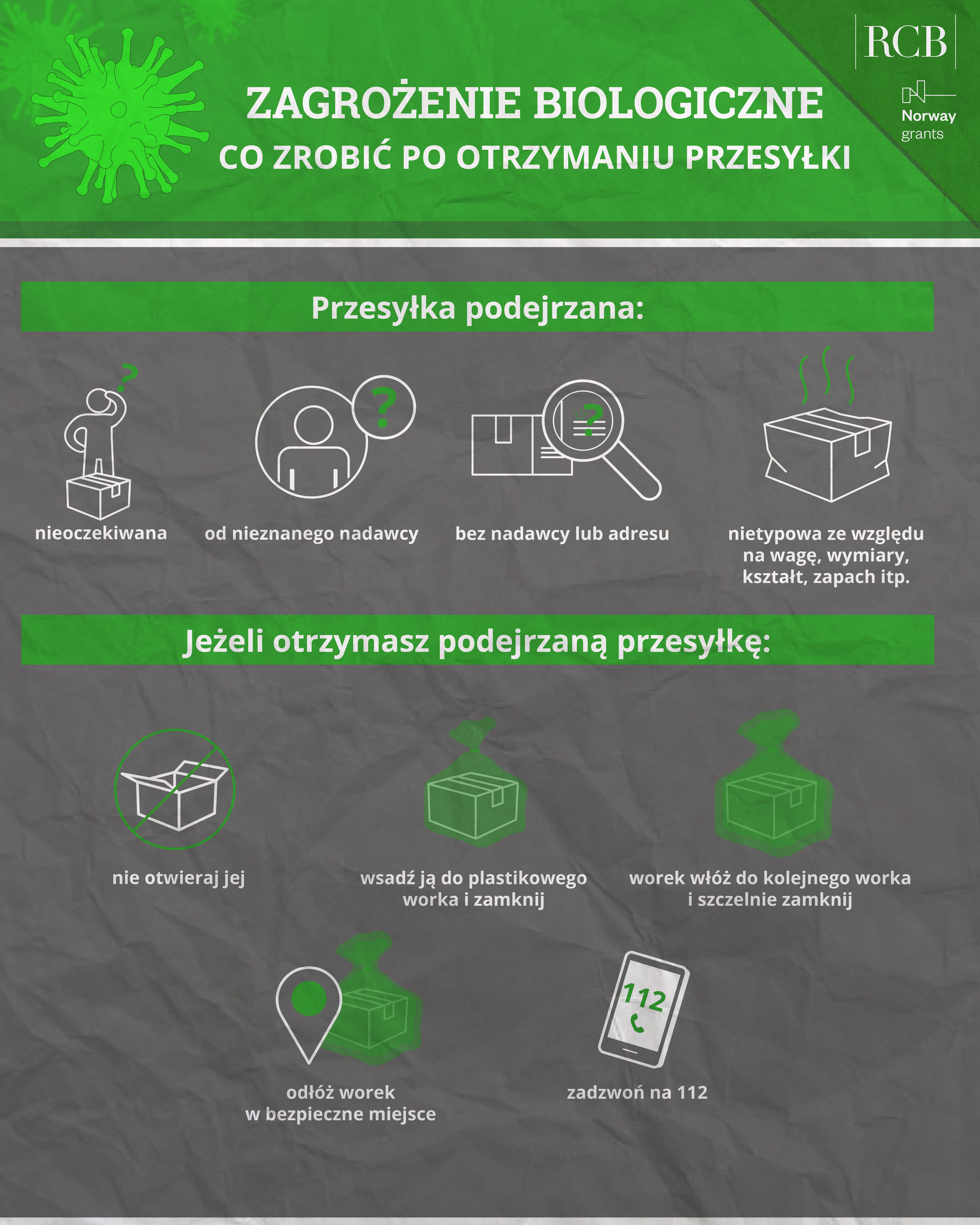 Grafika – Co zrobić po otrzymaniu podejrzanej przesyłki?Grafika_zagrożenie_biologiczne.png 1.68MB Grafika – Co zrobić po otrzymaniu podejrzanej przesyłki?