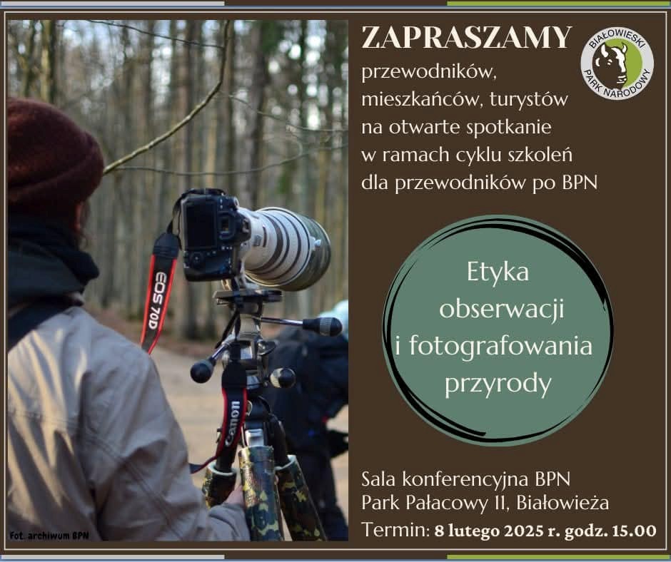 Regionalna Dyrekcja Ochrony Środowiska w Białymstoku zaprasza mieszkańców regionu, miłośników przyrody, pasjonatów filmu i fotografii na otwarte spotkanie w Białowieskim Parku Narodowym. Weźmiemy tam udział w dyskusji o etyce fotografii, o granicy pomiędzy pasją a koniecznością ochrony przyrody.