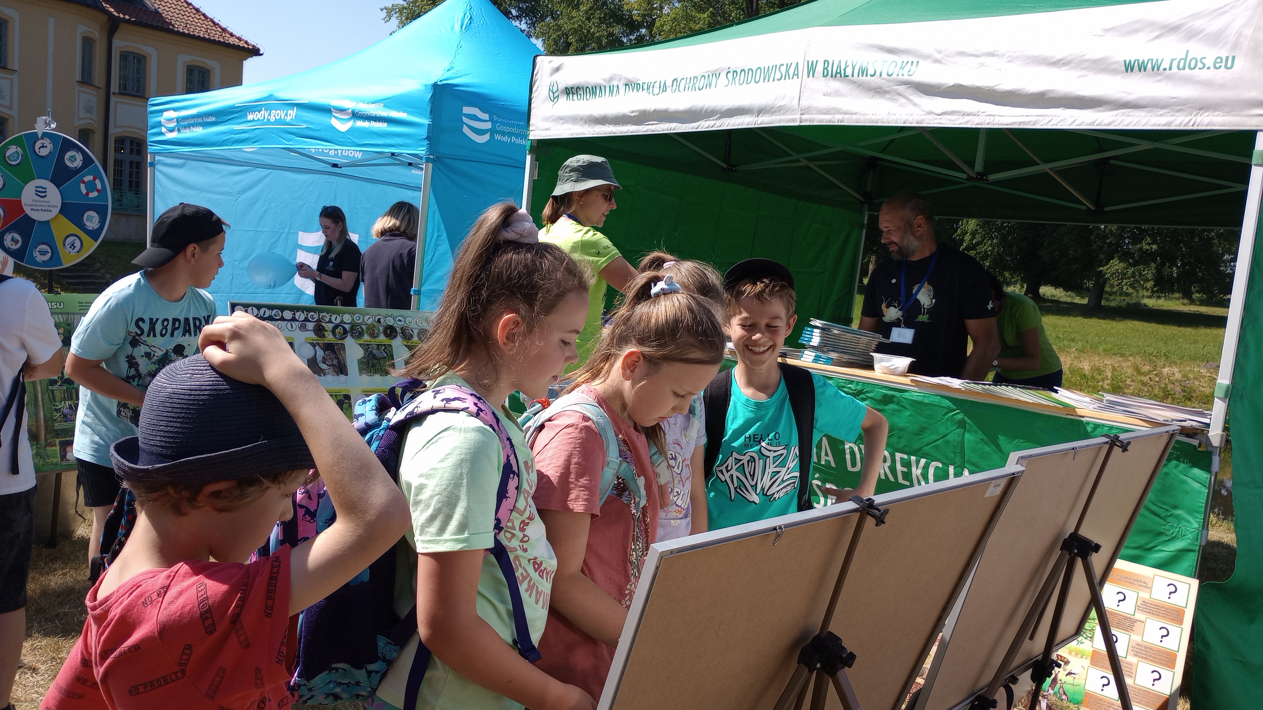 Pracownicy Regionalnej Dyrekcji Ochrony Środowiska w Białymstoku 07 czerwca 2023 roku na terenie parku Muzeum Wnętrz Pałacowych w Choroszczy wystawili namiot edukacyjny, gdzie dzieci i młodzież uczestniczyli w rozwiązywaniu wszelkiego rodzaju zagadek przyrodniczych. Oczywiście, każdy uczestnik konkursu otrzymał drobny upominek.