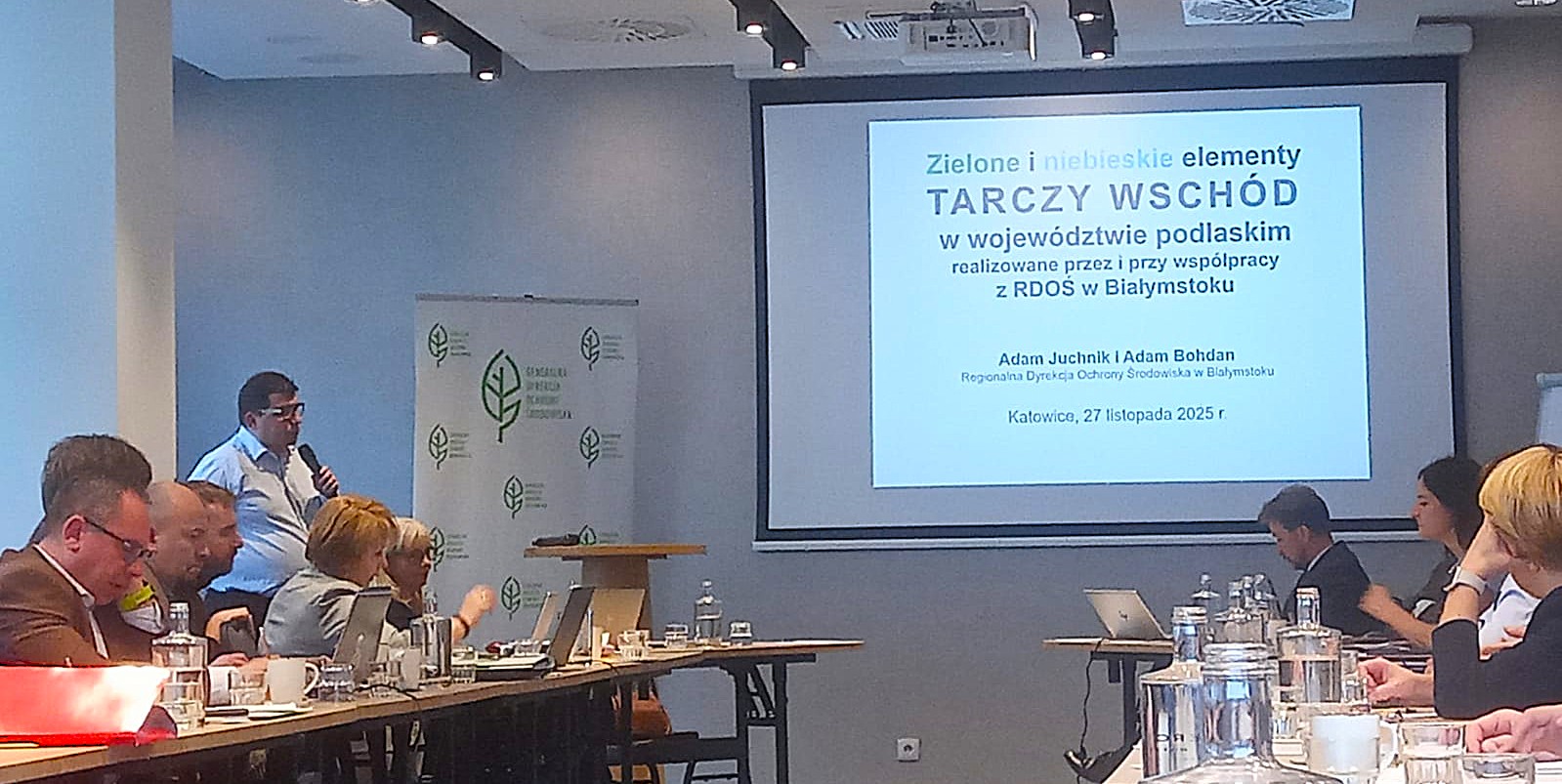 Dyrektorzy podczas narady mieli wystąpienie – „Zielone i niebieskie elementy Tarczy Wschód w województwie podlaskim realizowane przez i we współpracy z RDOŚ w Białymstoku”. Dodatkowo Regionalny Konserwator Przyrody omówił problematykę zagrożenia pożarowego związanego z nagromadzeniem martwego drewna oraz realizowaną gospodarką leśną na przykładzie Puszczy Białowieskiej.