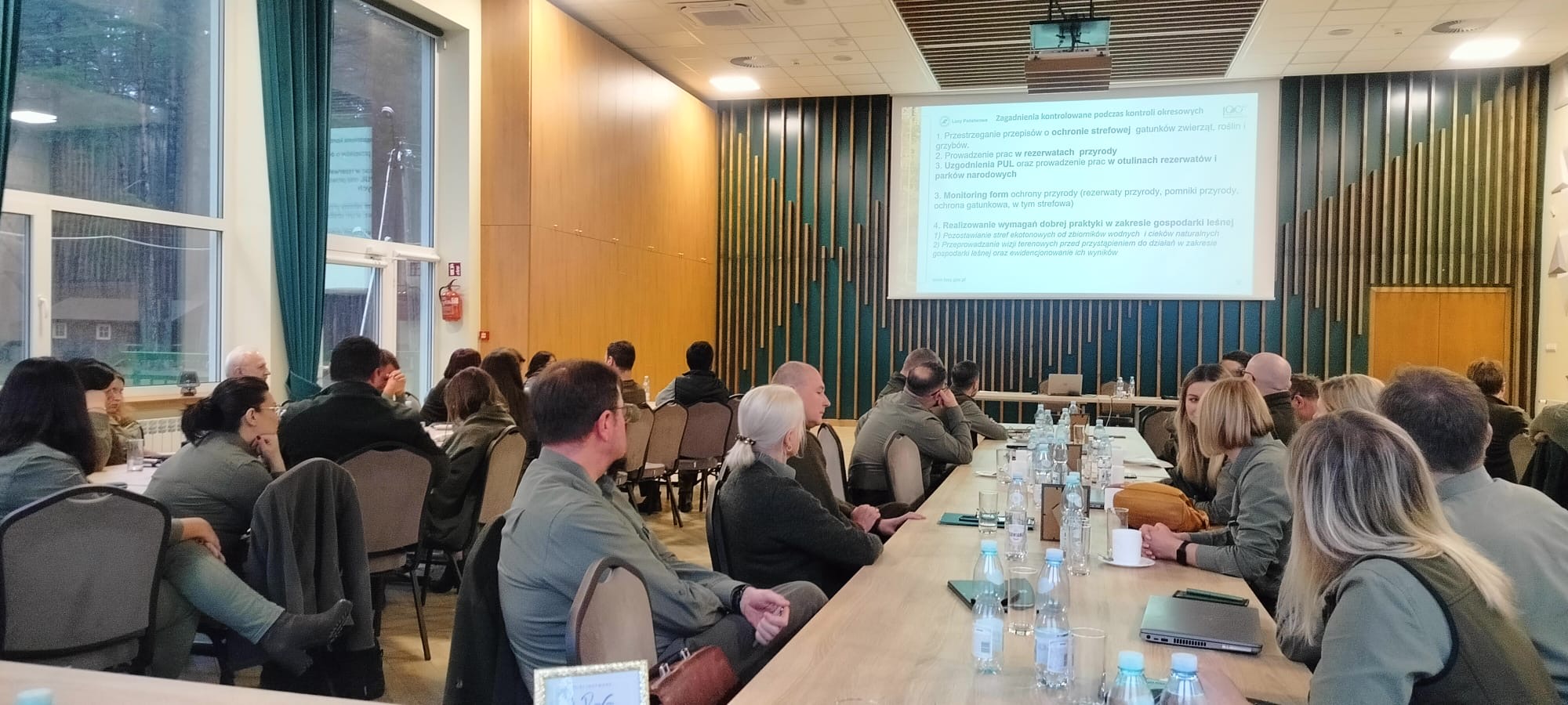 Wiodącymi tematami były: rezerwaty przyrody, ochrona gatunkowa oraz obszary Natura 2000. Podczas narady Regionalny Konserwator Przyrody – Adam Bohdan przedstawił zagadnienia związane z egzekwowaniem ochrony gatunkowej: ochrona rozłożystych drzew sędziwych, ochrona wrażliwych epifitów zaliczanych do reliktów puszczańskich oraz egzekwowanie ochrony saproksylobiontów; przedstawił również specyfikę kilku rezerwatów, które mają być niebawem utworzone w Puszczy Augustowskiej i Puszczy Knyszyńskiej. Naczelnik Wydziału Ochrony Przyrody i Natura 2000 – Iwona Naliwajek przedstawiła planowane przez RDOS w Białymstoku działania związane z uzupełnieniem dokumentacji planistycznej dla obszarów Natura 2000 oraz działaniami z zakresu ochrony czynnej w ramach finansowania z programu FENIKS oraz Narodowego Funduszu Ochrony Środowiska. Dyrektor RDOŚ w Białymstoku – Adam Juchnik zarysował obszary przyszłej współpracy RDOŚ z Lasami Państwowymi. Kierownictwo RDOS w Olsztynie przedstawiło uwarunkowania prawne związane z ochrona gatunkowa i rezerwatami przyrody. Barbara Gołowacz z RDLP Białystok omówiła zagadnienia związane z monitoringiem i przeciwdziałaniem Inwazyjnym Gatunkom Obcym. Spotkanie bez wątpienia pozwoliło na lepsze, wzajemne zrozumienie specyfiki pracy obu instytucji. Dziękujemy Regionalnej Dyrekcji Lasów Państwowych w Białymstoku za zaproszenie.