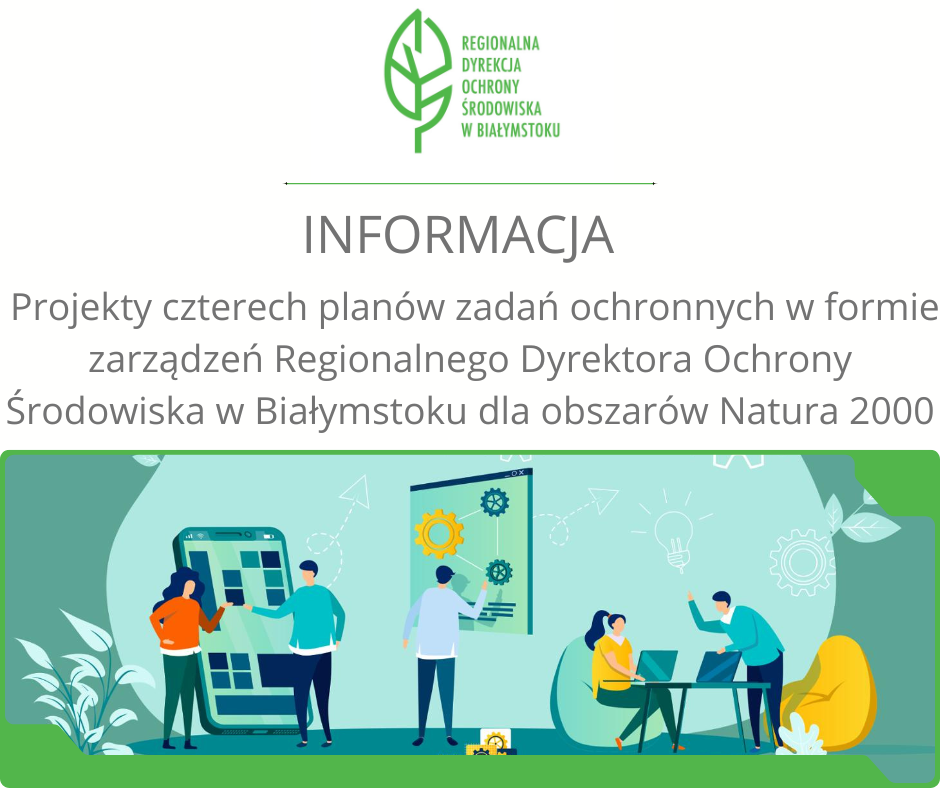 Regionalny Dyrektor Ochrony Środowiska w Białymstoku informuje, iż w dniu 5 lutego 2026 roku wyłożył do publicznego wglądu projekty czterech planów zadań ochronnych w formie zarządzeń Regionalnego Dyrektora Ochrony Środowiska w Białymstoku dla obszarów Natura 2000